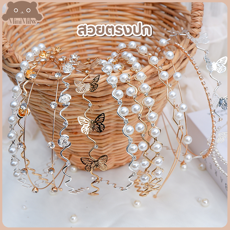 [พร้อมส่ง] ที่คาดผม ประดับมุกประดับเพชร มี 27 แบบ ผีเสื้อ กุหลาบ น่ารักสไตล์เกาหลี วัสดุโลหะดัดได้ : MiniMilwʕ•ᴥ•ʔ