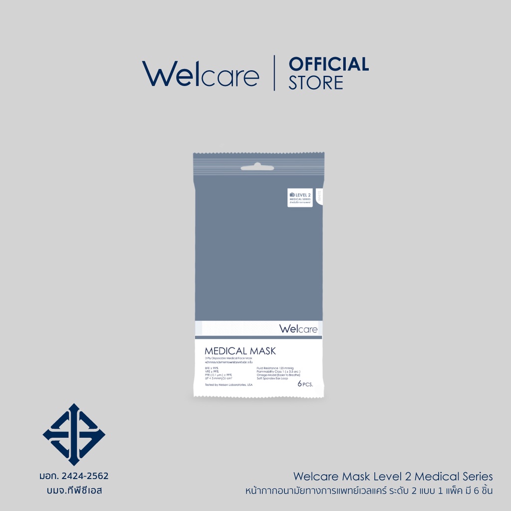 [Flagship Store]Welcare Mask Level 2 Medical Series หน้ากากอนามัยทางการแพทย์เวลแคร์ ระดับ 2 แบบซอง [ 6 ชิ้น ]