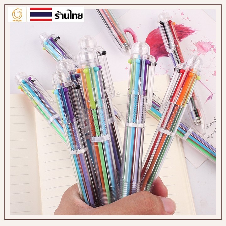 (P-189) ปากกาลูกลื่น 6 สี/ด้าม เขียนลื่น สีสวย ติดทน ปากกาจดโน้ต