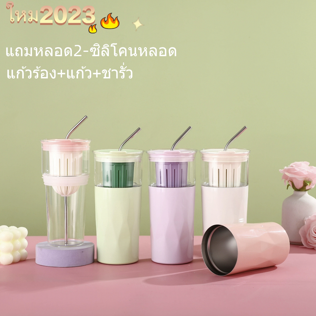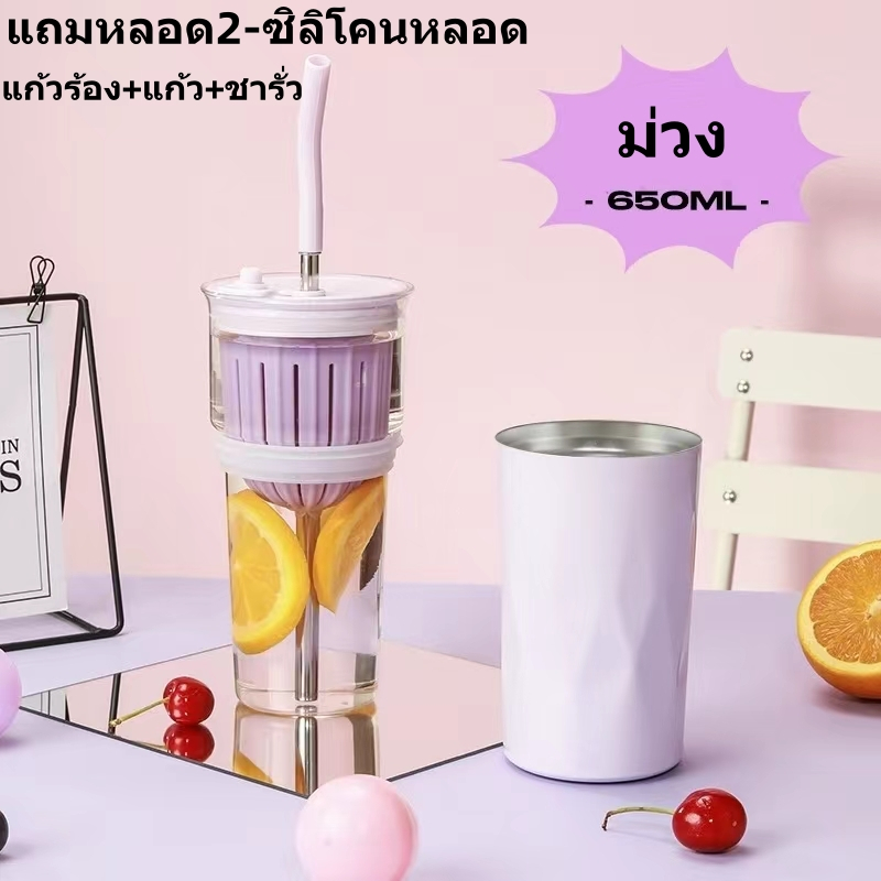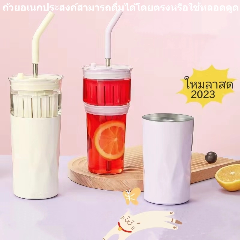 แก้วเก็บความเย็น-ร้อง650ML แก้ว 2 ชั้น แก้วเก็บความเย็น 2in1 รุ่นUK8116