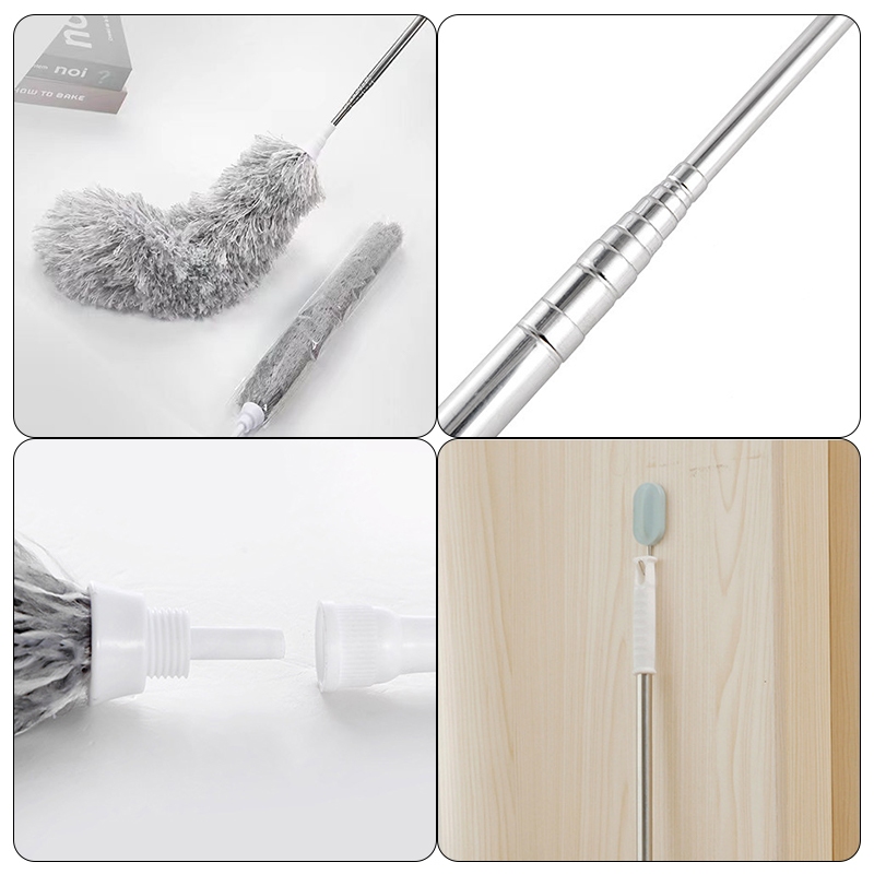 ไม้ปัดฝุ่นไมโครไฟเบอร์ - ขนาด 280 cm. - ปรับขนาด 83-280 cm - ขนาดความยาวหัวแปรง 38 cm - วัสดุ : PP + เส้นใยละเอียด + สแตนเลส ไม้ปัดฝุ่น 1ชุด (ด้ามx1, หัวปัดฝุ่นไมโครไฟเบอร์x1) วิธีทำความสะอาดและปั่นแห้ง 1. ซักทำความสะอาด 2. บีบน้ำออกแล้วประกบมือ หมุนปั่นสลัดน้ำออก ให้เส้นใยปุยสวยเหมือนเ