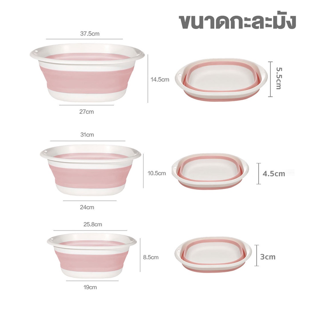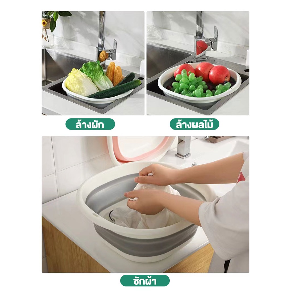 NEW กะละมังพับได้ มี 3 ไซส์ กะละมังซิลิโคนอเนกประสงค์ กะละมังล้างผักผลไม้ ซักผ้า ตั้งแคมป์ กะละมังแบบพกพา