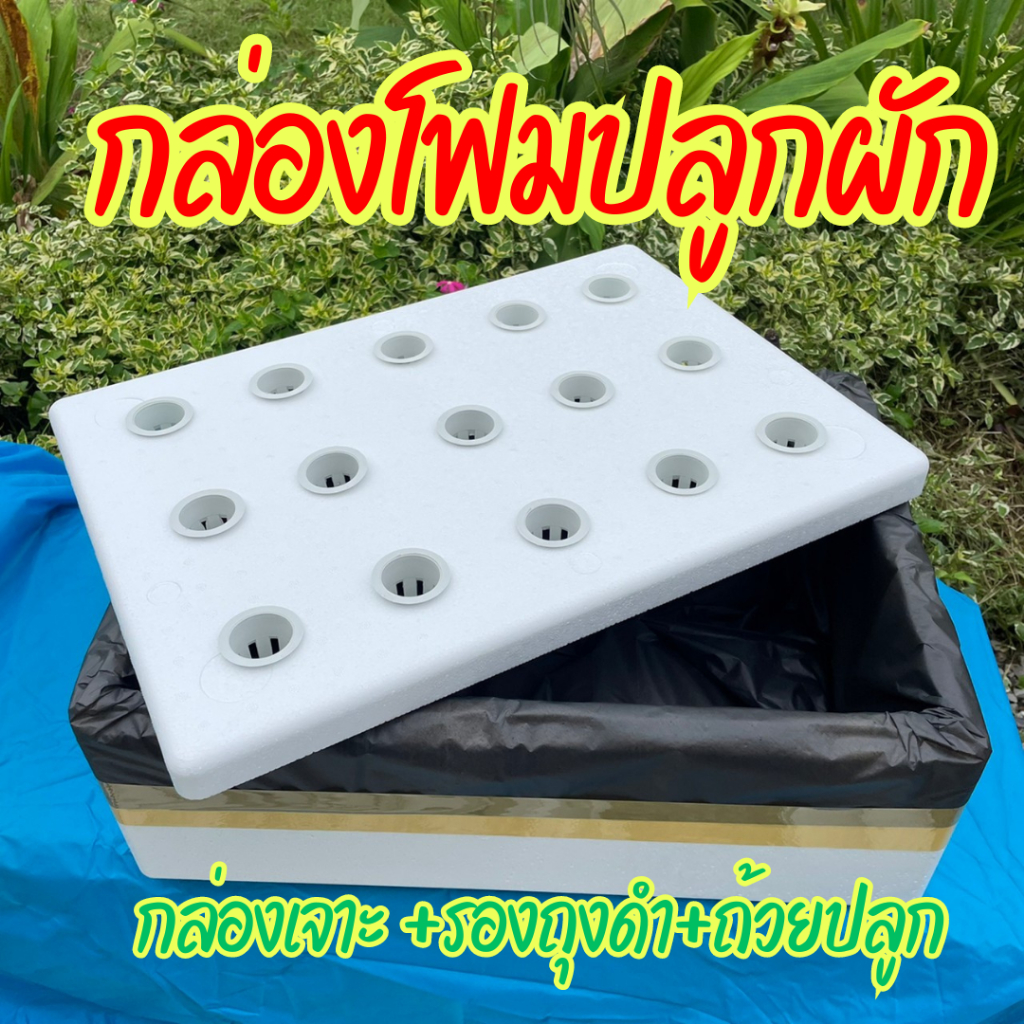กล่องโฟมปลูกผัก กล่องโฟมปลูกผักไฮโดรโปนิกส์พร้อมเจาะรู กล่องโฟมขนาด 10 กิโล