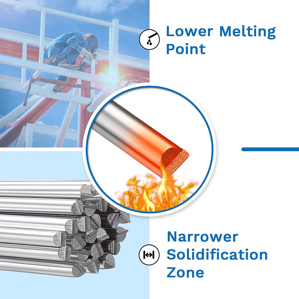 สเปค: 33CM*1.6mm-20pcs:เส้นละยาว33ซม. หนา1.6มิล มีทั้งหมด20เส้น 33CM*1.6mm-50pcs:เส้นละยาว33ซม. หนา1.6มิล มีทั้งหมด50เส้น 50CM*2.0mm-50pcs:เส้นละยาว50ซม. หนา2.0มิล มีทั้งหมด50เส้น จุดหลอมเหลวต่ำของอลูมิเนียม กระจายความร้อนได้อย่างรวดเร็ว รอยเชื่อมที่ชัดเจนและสวยงาม วัสดุุที่เหมาะใช้งาน:อลูมิเนี