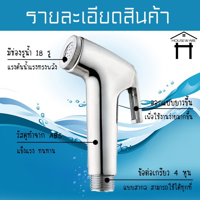 ***รายละเอียดสินค้า - ละเอียดอ่อมนุ่ม ดีต่อจุดอ่อนโยน - วัสดุสุดพรีเมี่ยม ชุบด้วยโครเมี่ยมให้ความเงางาม มันวาว - สปริงตัวกดคุณภาพสูง ตัวกดไม่หักอย่างแน่นอน - หัวฉีดถูกออกแบบมาให้จับถนัดมือ - แข็งแรงทนทาน ใช้งานได้ยาวนาน - ดีไซน์ทันสมัย เข้ากับทุกสไตล์ * ครบชุดจะประกอบไปด้วย * 1. หัวฉีดชำระ