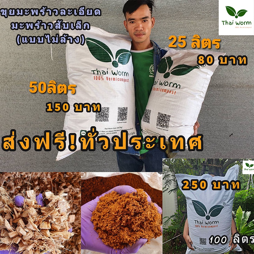 ... ่ายน้ำออกวันละครั้ง เท่านี้ก็ลดสารแทนนินได้แล้วครับ จากนั้นนำไปตากแดดให้แห้ง หรือถ้าไม่สะดวกไม่ต้องตากแดดก็ได้ครับ เพราะล้างแล้วครับ !! ทางร้านจำหน่ายแบบเป็นลิตรนะครับ เพราะความชื้นของมะพร้าวทั้งปีจะไม่นิ่งครับ หากจำหน่ายเป็นน้ำหนักในช่วงหน้าฝนน้ำหนักจะมาก เกินไป ครับ ราคามะพร้าวสับและขุยมะพร้าว ( แบบยังไม่ล้าง) ขนาด 25 ลิตรราคา 80 บาท ขนาด 50 ลิตรราคา 150 บาท ขนาด 100 ลิตรราคา 250 บาท