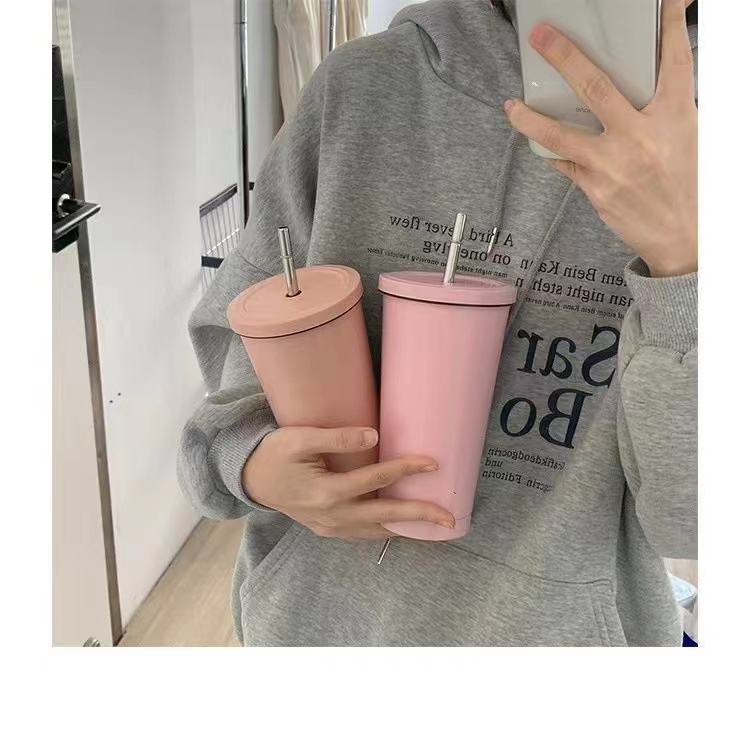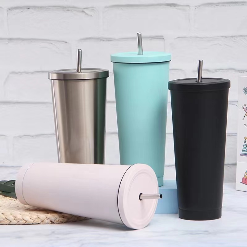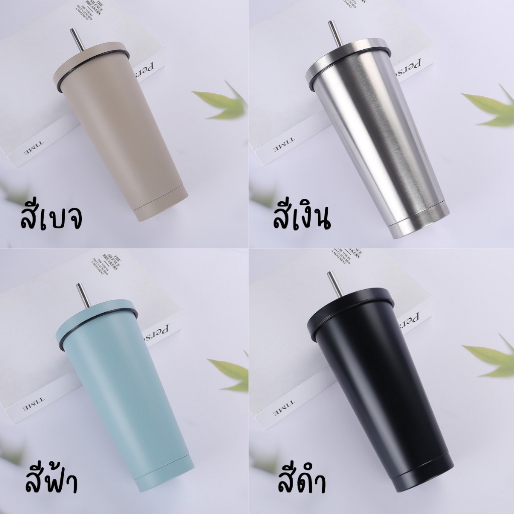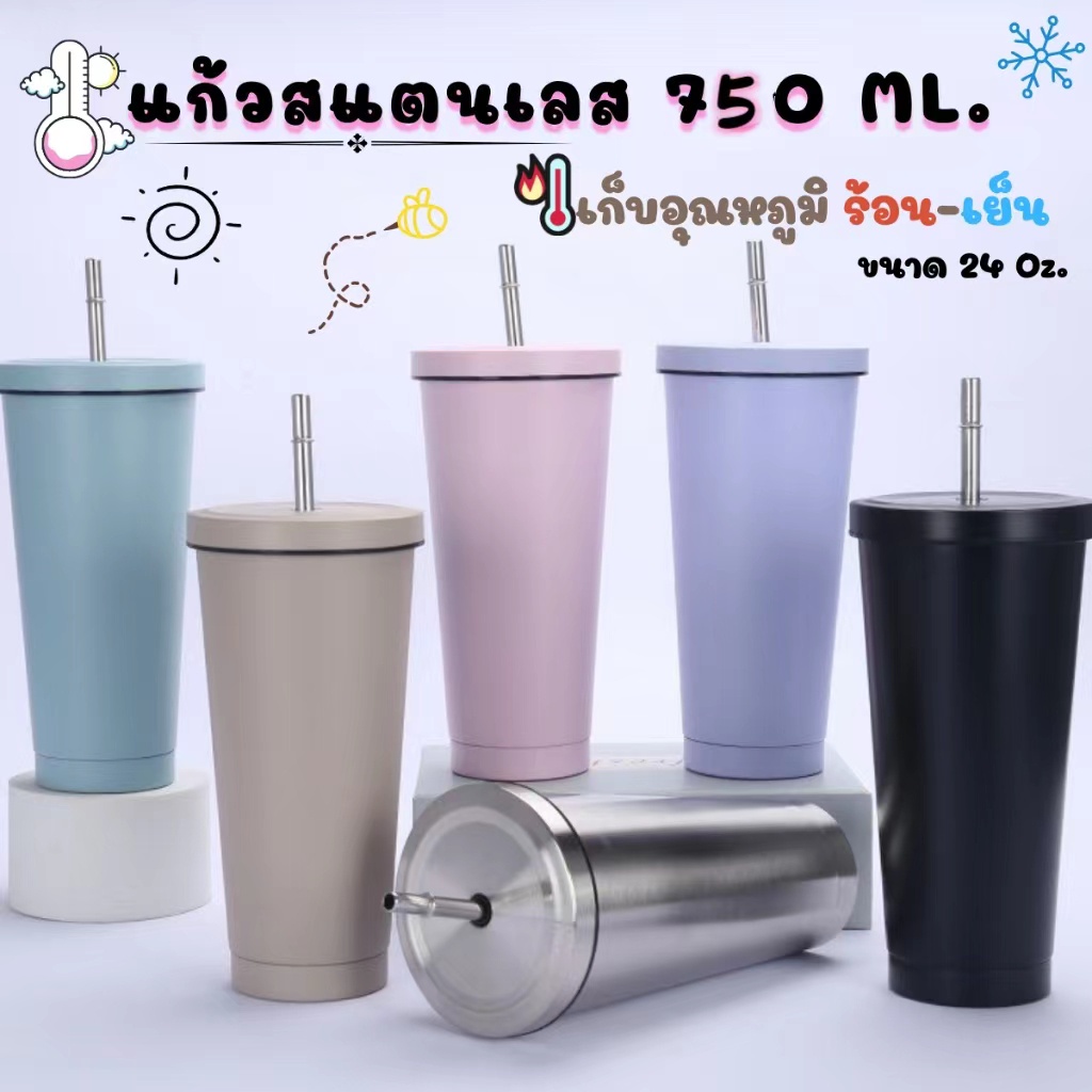 แก้วเก็บอุณหภูมิ แก้วเก็บความเย็น24oz/750mlสแตนเลส304พร้อมหลอด แก้วเก็บความร้อน-เย็น แก้วสแตนเลสทรงสูง พร้อมหลอดและฝาปิด