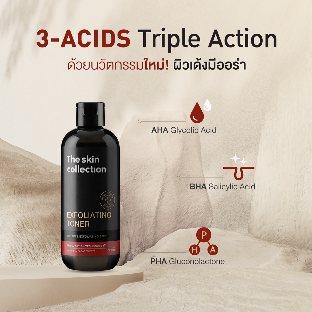 โทนเนอร์ผลัดเซลล์ผิว ลดสิวอุดตัน ลดเลือนริ้วรอย คุมความมัน และรูขุมขนกระชับ The Skin Collection Exfoliating Toner 300ml