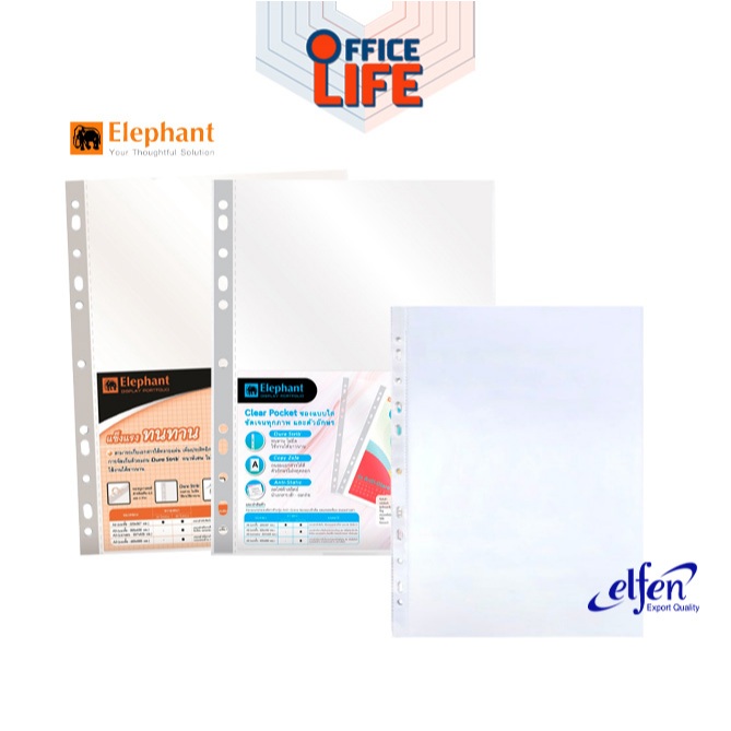 Elephant (ตราช้าง) ไส้แฟ้ม ซองอเนกประสงค์ 11รู ขนาด A4 ไส้แฟ้ม ซองพลาสติกใส ไม่ฉีกขาดง่าย ตัวหนังสือไม่หลุดติดซอง แถบข้างเจาะ 11 รู ใช้งานร่วมกับแฟ้มได้ทุกชนิด ถนอมและอ่านเอกสารได้ง่าย โดยไม่ต้องดึงเอกสารออกจากซอง เหมาะสำหรับใส่เอกสารขนาด A4 มี 3 รุ่น ตราช้าง (ปกผ้าหนา) / ตราช้าง (ผิวส้มบาง) /
