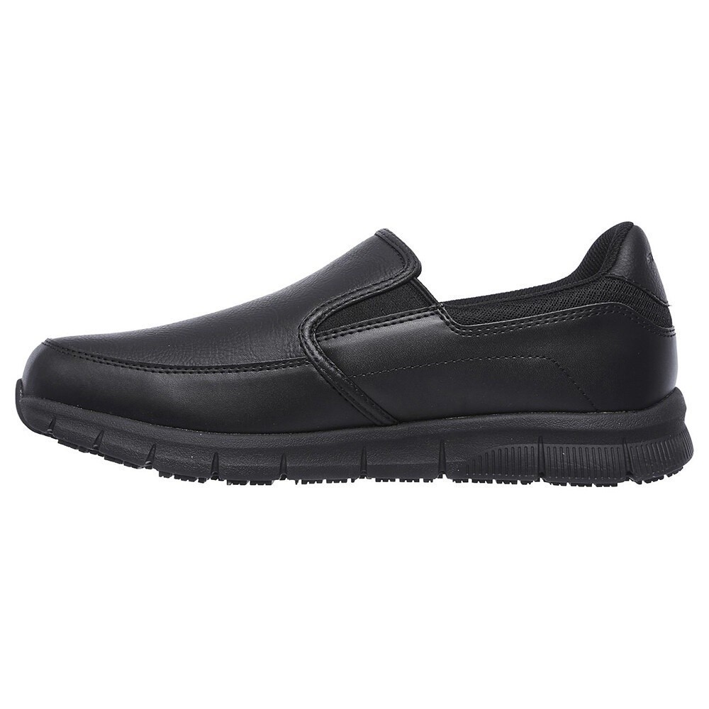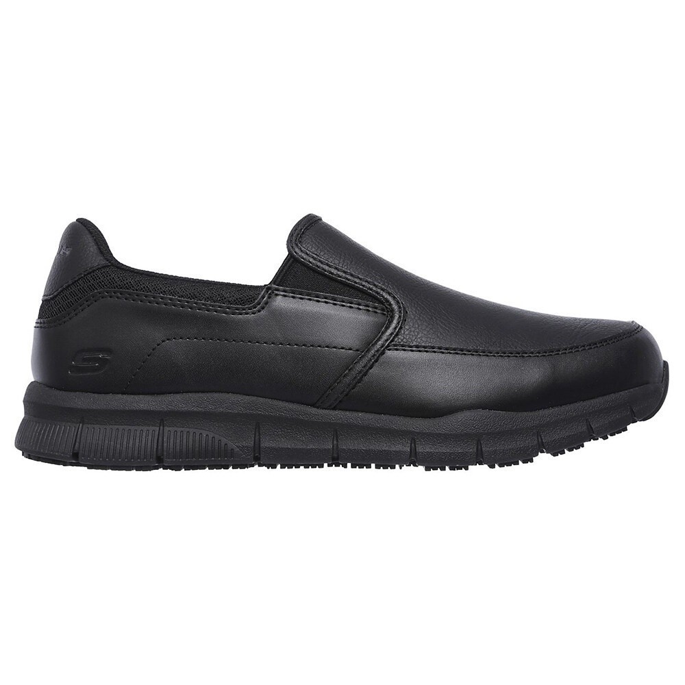 Description: Work smarter and more comfortably with the Skechers Work Relaxed Fit?: Nampa. Smooth leather-textured synthetic upper on a sporty slip-on casual with slip resistance, electrical hazard protection and Memory Foam insole. Features: - Slip-resistant traction outsole with oil resis