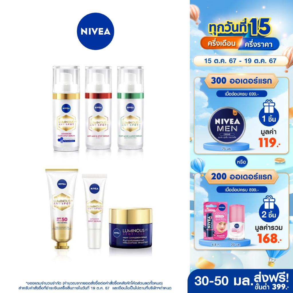 [ขายดี+โค้ดลด 5%]นีเวีย ลูมินัส630สปอตเคลียร์(เซรั่ม30ML,กันแดด40ML,ไนท์รีแพร์50ML,เซรั่ม10ML)ลดฝ้า,จุดด่างดำ,ไฮยา NIVEA