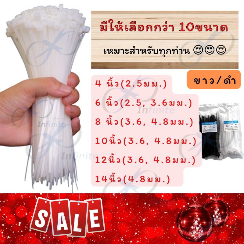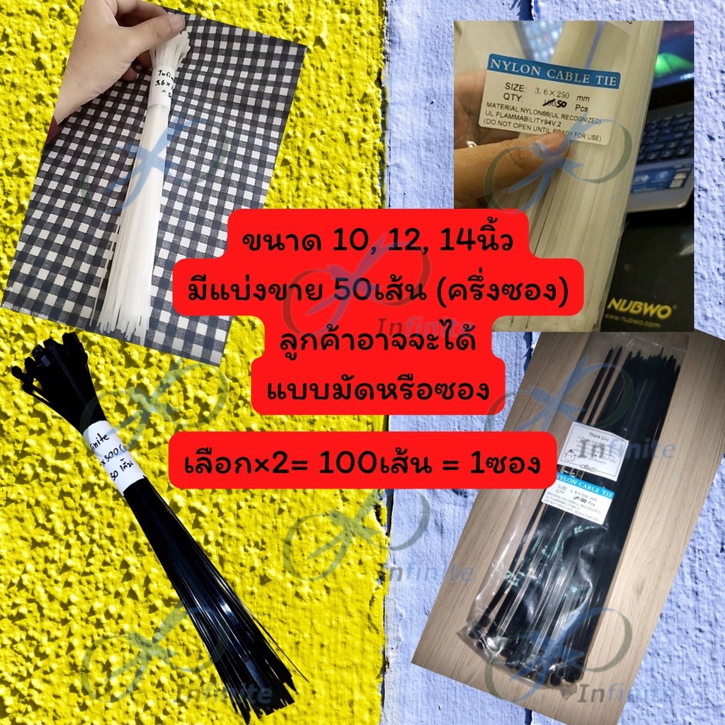 (เหนียว ทน ถูก แพค100เส้น)4/6/8/10/12/14/16นิ้ว เคเบิ้ลไทร์ Cable Tie หนวดกุ้ง ไนล่อนPA66 เกรด A+ สีขาว/ดำ สายรัดพลาสติก