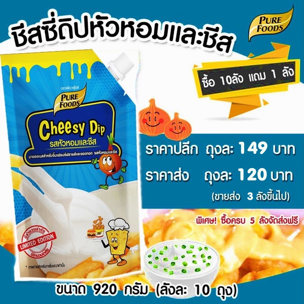 ชีสดิปรสหัวหอมและชีส 920กรัม ตราเพียวฟู้ดส์ ชีส หัวหอมชีส ซาวครีม ชีสดิป ชีสดิปหัวหอม ชีสดิปซาวครีม ชีสซอส ซอสชีส