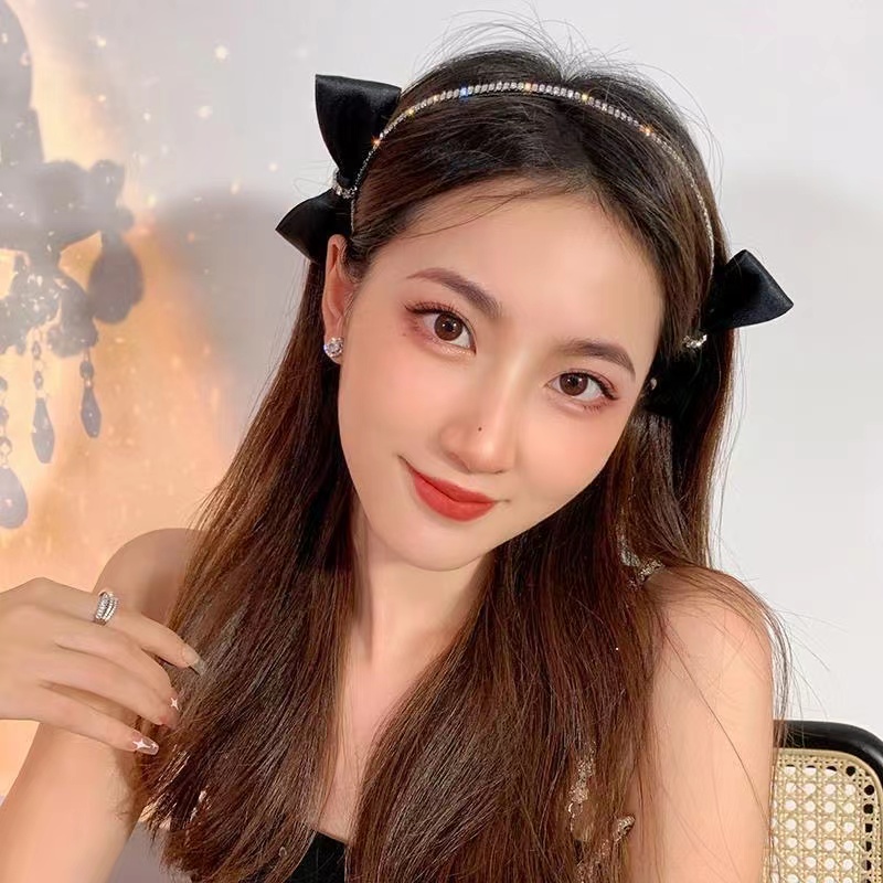 ✨ลด 15% โค้ด LUCKY2✨ ที่คาดผมเพชรวิ้งวับ วิบวับ สวย มาใหม่ น่ารัก สาวเกาหลี ประดับโบว์ 2 ข้างน่ารักๆ