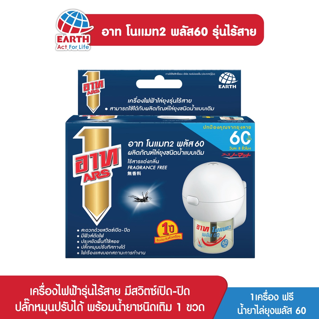 อาท โนแมท พลัส60 เครื่องไฟฟ้าไล่ยุง รุ่นไร้สาย พร้อมน้ำยา ไร้สารแต่งกลิ่น ARS NOMAT PLUS 60 CORDLESS SET FRAGRANCE FREE