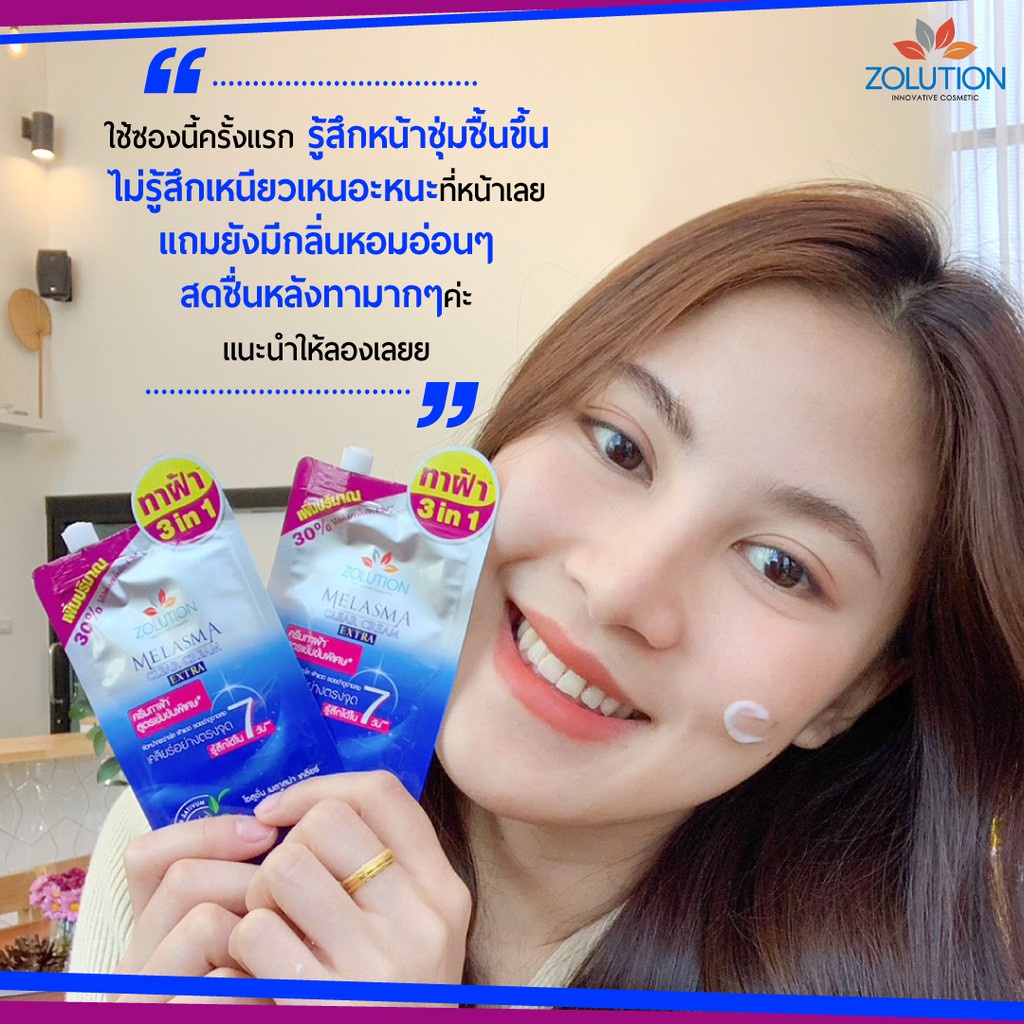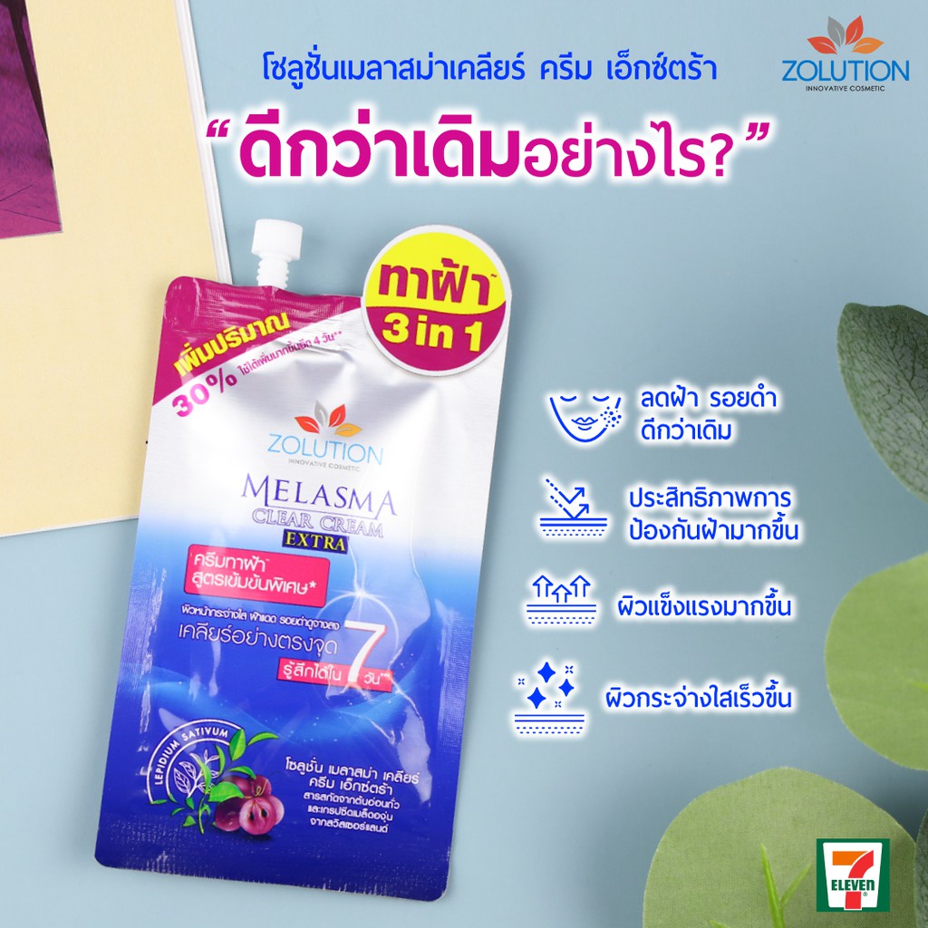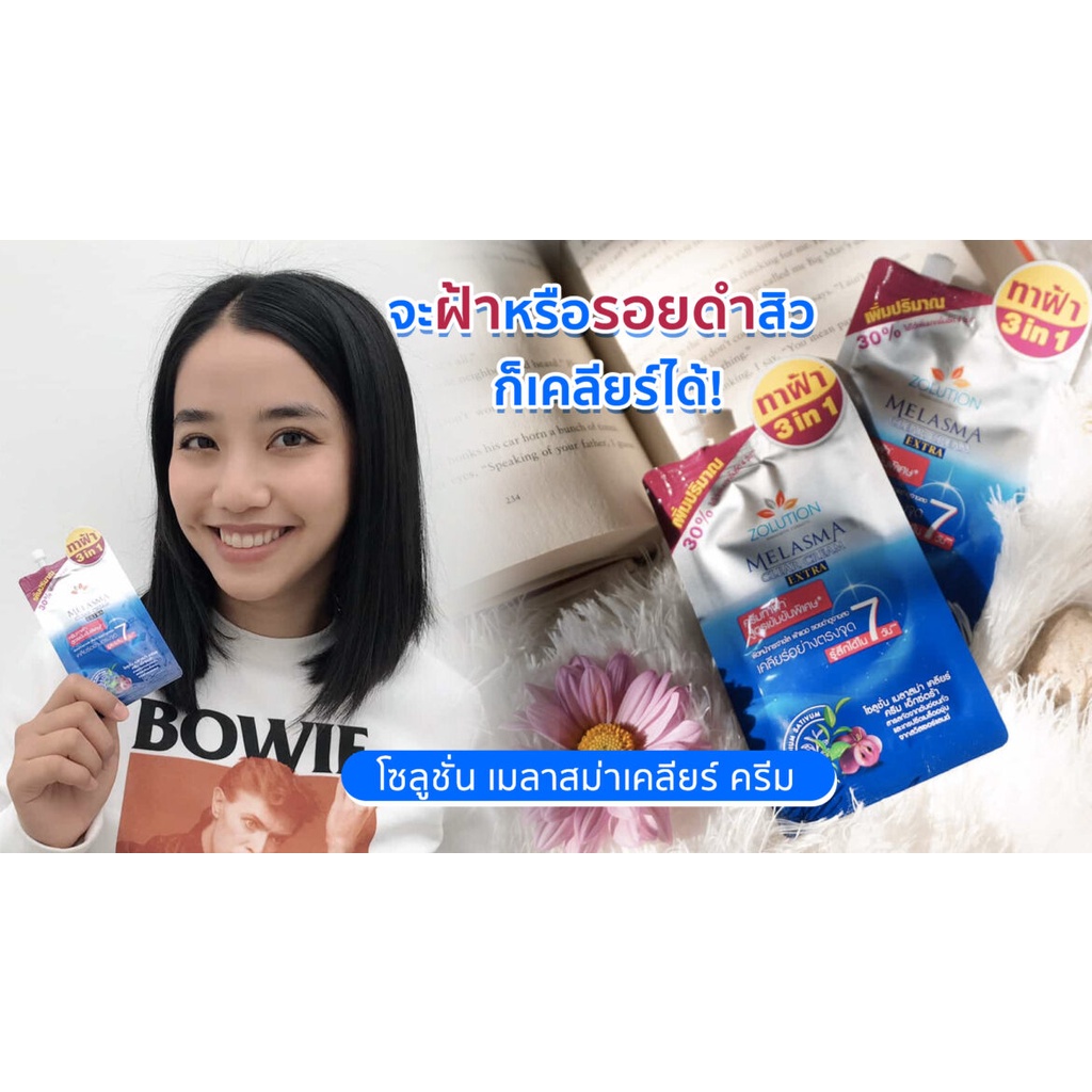 (1 ซอง) Zolution โซลูชั่น เมลาสม่า เคลียร์ ครีม เอ็กซ์ตร้า (สูตรเข้มข้นพอเศษ) ทาฝ้าแดด รอยดำ รอยสิว