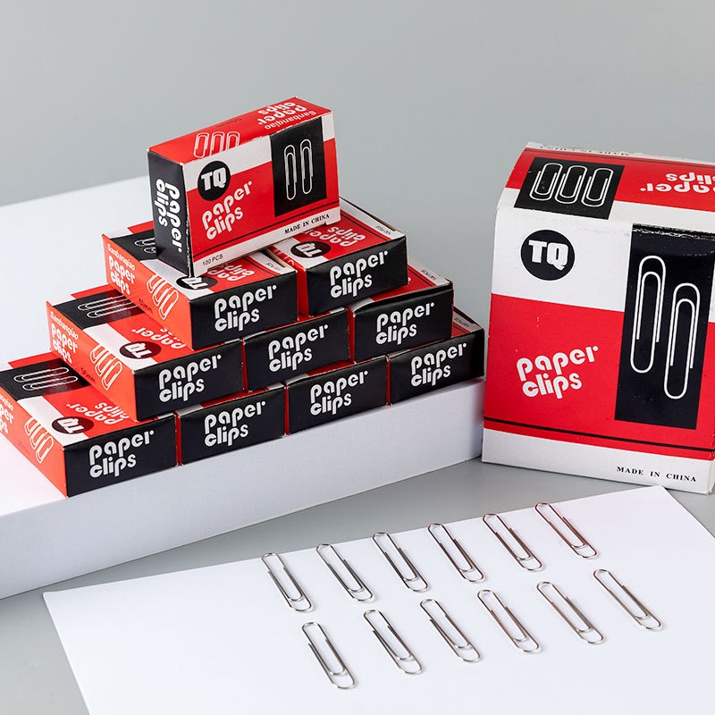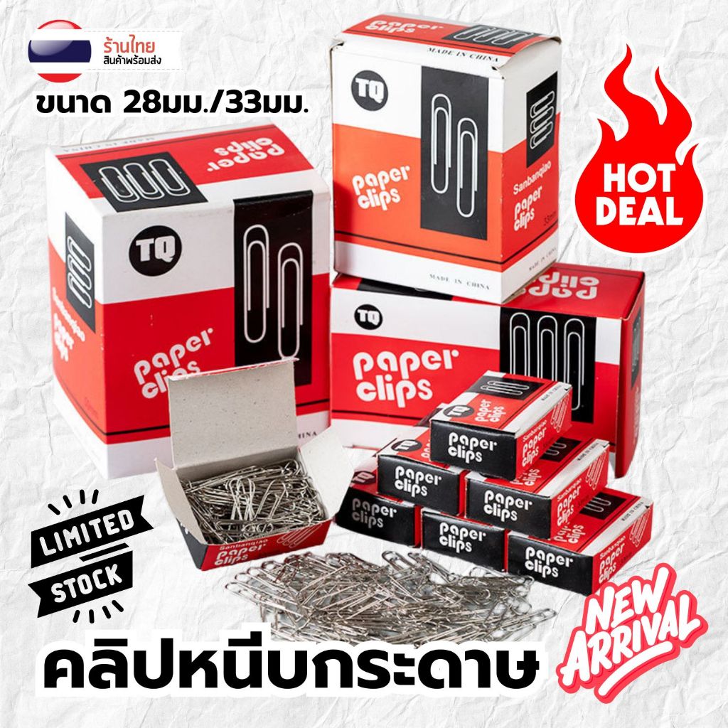 สุดคุ้ม💥 [100ชิ้น/กล่อง] 📌คลิปหนีบกระดาษ S0368 ยี่ห้อ TQ พร้อมกล่อง ขนาด 28มม./33มม.