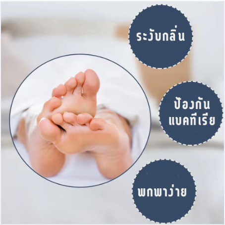 ... บกลิ่นที่ไม่พึงประสงค์ในรองเท้า ช่วยให้รองเท้าแห้ง ไม่ทิ้งคราบในรองเท้า -พร้อมส่วนผสมของสารสกัดจากพืชธรรมชาติ พร้อม Moisturizer บำรุงเท้า ใช้ได้ทุกเพศทุกวัย -ยับยั้งการเจริญเติบโตของแบคทีเรีย ให้ฉีดบริเวณที่มีการจามของคนรอบข้าง หรือบริเวณตัวบ้าน -ใช้ง่ายพกพาสะดวก ใช้ได้ 2-3 เดือน แห้งเร็วไม่เหนียวเหนอะหนะ