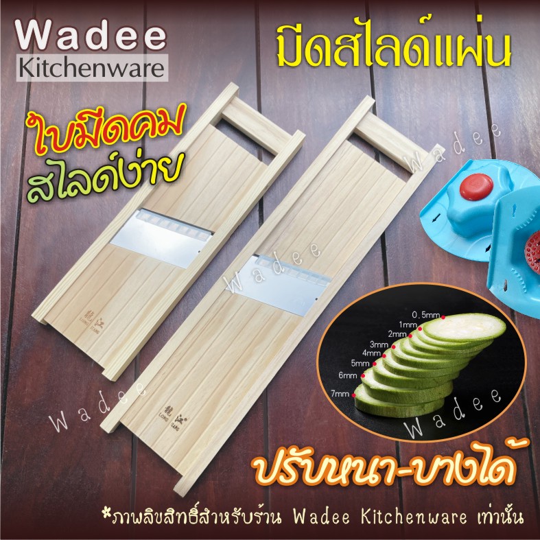 มีดสไลด์แผ่น ที่ขูดมะละกอ ที่สไลด์มัน เผือก ฟักทอง หัวไชเท้า ฯลฯ ของแท้!!! (หลงเจียง) ปรับความหนาบางได้ตามต้องการ ตั้งแต่ 0.5 - 7.0 มิลลิเมตร ใบมีดคมกริบ สไลด์ง่าย เบามือ สะดวก รวดเร็ว ประหยัดเวลา ผลิตจากไม้เนื้อดีอบแห้ง ใบมีดวัสดุสแตนเลส Food Grade แข็งแรง ทนทาน มีให้เลือก 2 ขนาดคือ 1. ขน