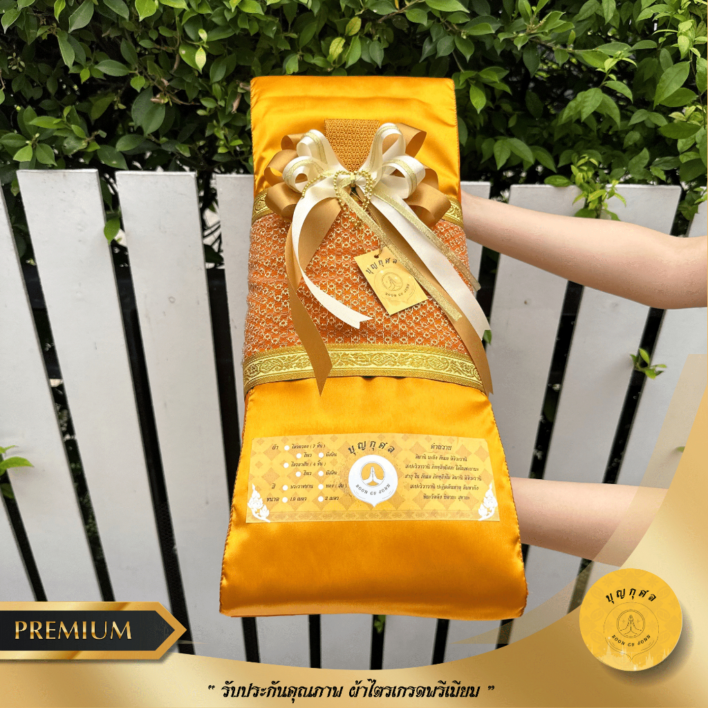 ผ้าไตรจีวร ไตรเต็ม ไตรครองคู่ 7 ชิ้นครบชุด เนื้อโทเร/มัสลิน รับประกันคุณภาพเกรดพรีเมียม ไตรครองคู่ เย็บตะเข็บคู่ เป็นผ้าใหม่ทุกชุดและได้มาตรฐาน สามารถใช้ได้จริงทุกชุด มีขนาด 1.9, 2.0, 2.1, 2.2 เมตร พร้อมโบว์และคำถวายตามภาพ **ขนาด 2.1 และ 2.2 เมตร จะเป็นขนาดพิเศษที่ต้องสั่งตัดเพิ่มเติม คุณลูกค้าสา