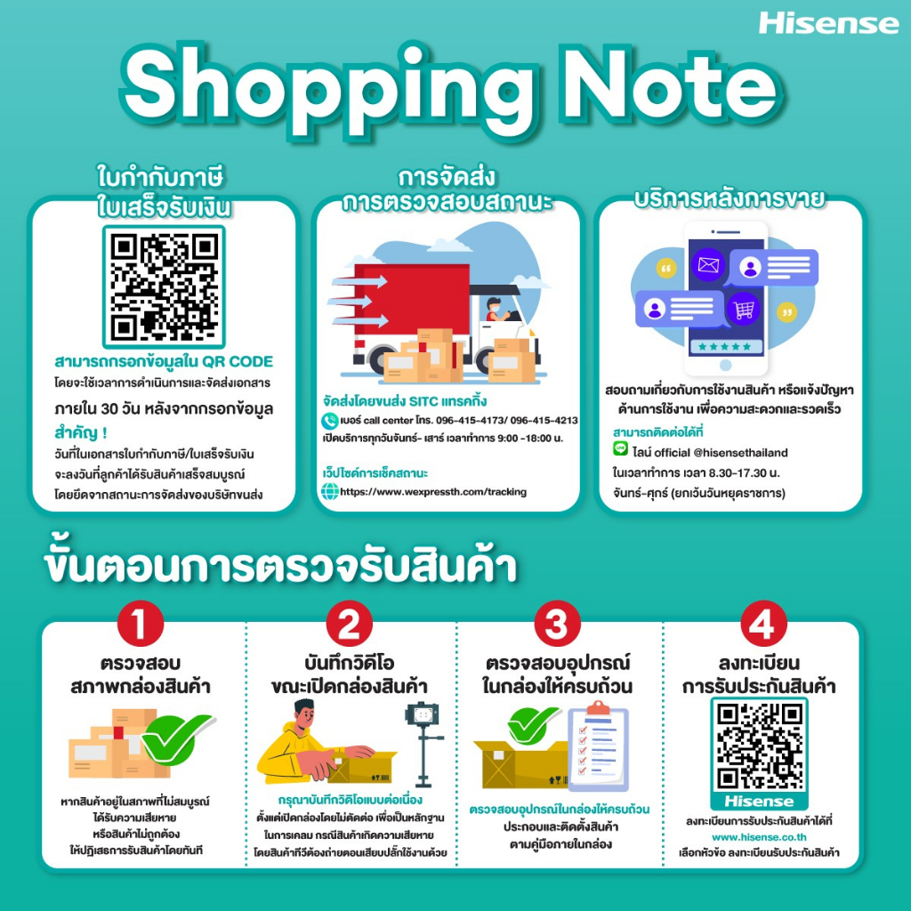 ... นั้น - บริษัทฯ ไม่อนุญาตให้ใช้โปรแกรมดัดแปลงอัตโนมัติ หรือโปรแกรมพิเศษ ในการสั่งซื้อสินค้าที่ร่วมรายการนี้ - สงวนสิทธิ์การใช้โค้ด 1 คน / 1 เครื่อง / 1 หมายเลขโทรศัพท์, เงื่อนไขเป็นไปตามที่บริษัทฯ กำหนด Hisense ตู้เย็น ประตู 1.6Q /45 ลิตร:รุ่น ER45B คงความสดใหม่ให้กับผัก ผลไม้และอาหารของคุณด้วยตู้เย็นจาก HISENSE HISENSE รุ่น ER45B พร้อมรักษาความสดใหม่ให้กับวัตถุดิบ อาหาร ผักและผลไม้ของคุณในทุกวัน ด้วยเทคโนโลยีอัจฉริยะที่ทันสมัยที่ให้ความเย็นทั่วถึงให้คุณสามารถแช่ของได้อย่างยาวนานแต่ยังคงความสดใหม่อยู่เสมอ รับประกันตัวเครื่อง 3 ปี และบริการ On site Service ทั่วประเทศ Call Center: 02-0170077 **ผ่อน 0% นาน 10 เดือน*** คุณสมบัติ ขนาด(คิว):1.6 ปริมาณความจุ(ลิตร):45 ระบบทำความเย็น:ไม่มี ระบบกระจายความเย็น:ไม่มี ระบบละลายน้ำแข็ง:กึ่งอัตโนมัติ ระบบกำจัดกลิ่น:ไม่มี ขนาด(ซม):44.5x46.8x50.0 ปริมาณความจุช่องแช่แข็ง(ลิตร):1 ปริมาณความจุช่องแช่เย็น(ลิตร):45 แผงควบคุมอุณหภูมิ:ADJUSTABLE THEROMSTAT ระบบทำน้ำแข็ง:ไม่มี ชนิดของชั้นวาง:พลาสติก ขั้นตอนการออกใบกำกับภาษี/ใบเสร็จ (Tax Invoice/ Receipt)🧾 ✅รบกวนกรอกข้อมูลในลิงค์ https://gecp.hisense.com/platform/gocp/invoiceTicket • ใช้เวลาการดำเนินการและจัดส่งเอกสารภายใน 30 วัน หลังจากกรอกข้อมูล **** หมายเหตุ: กรุณากรอกข้อมูลให้ครบถ้วน โดยตรวจสอบชื่อ-นามสกุล หมายเลขประจำตัวผู้เสียภาษี ที่อยู่ให้การออกใบกำกับภาษีให้ถูกต้องก่อน Submit หากต้องการแก้ไขข้อมูลเพิ่มเติม กรุณาไม่กรอกข้อมูลซ้ำซ้อน ท่านสามารถแจ้งข้อมูลที่ถูกต้องทางแชทนี้ เพื่อให้แอดมินส่งเรื่องประสานงานให้ค่ะ เงื่อนไขการรับเคลมสินค้า 1. ก่อนแกะกล่องสินค้า ต้องถ่ายคลิปวีดีโอ ใบปะหน้ากล่องสินค้าให้เห็นชื่อลูกค้า ที่อยู่ ขณะแกะกล่องสินค้า และสินค้าที่แพ็คในกล่องสินค้า โดยไม่ตัดต่อ และถ่ายต่อเนื่องในคลิปเดียวจบ 2. หากพบว่ากล่องสินค้าชำรุด ฉีกขาด แตกหัก ให้ถ่ายมุมของกล่องสินค้าไว้เป็นหลักฐานก่อนแกะ 3. เมื่อพบปัญหา สินค้าไม่ครบ ส่งผิด ชำรุด แตกหัก จากการขนส่ง ให้ลูกค้าส่งคลิปหลักฐานและแจ้งเลขที่สั่งซื้อให้แอดมินร้าน ท่างแอดมินร้านจะติดต่อประสานงานและแก้ไขปัญหาภายใน วันทำการ1วันทำการ กรณีไม่รับเคลม/คืนสินค้า 1. แจ้งเคลมสินค้า แตกหัก เสียหาย เป็นรอย ใช้งานไม่ได้ โดยไม่มีคลิปประกอบ ตามเงื่อนไขที่กำหนด 2. สินค้าหายนอกเหนือจากการขนส่งสินค้า เช่น ลูกค้าทำสินค้าชำรุดเอง แตกหักจากการติดตั้ง หรือ เคลื่อนย้ายสินค้า โดยไม่ระมัดระวัง สอบถามข้อมูลเพิ่มเติม Customer Service Online : 02-0170072, 02-0189786 (วันจันทร์ - ศุกร์ เวลา 09.00 – 18.00 น. เว้นวันหยุดราชการ) หมายเหตุ : รับเคลมสินค้าเมื่อมีหลักฐา