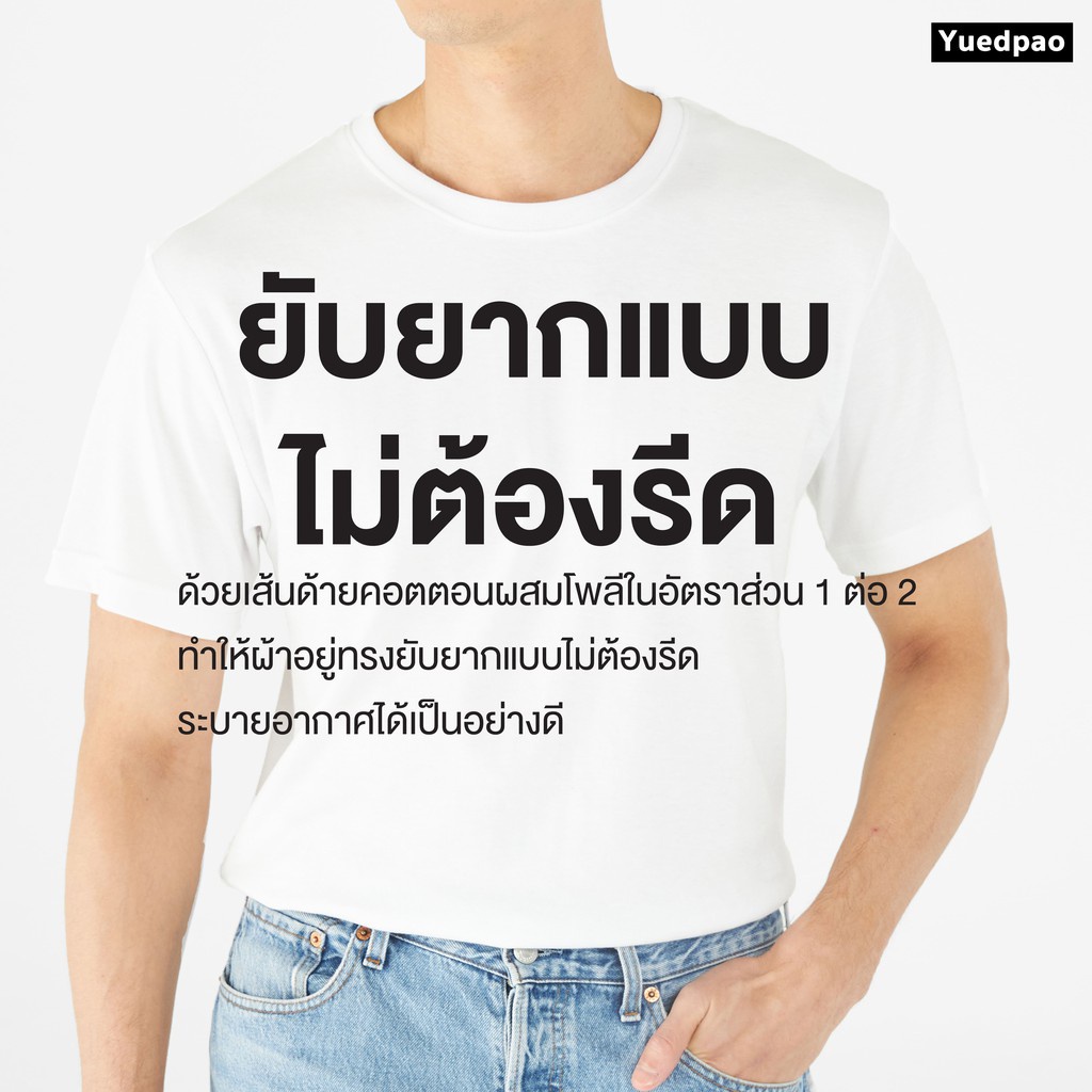 ... าย เพื่อยืดอายุการใช้งาน ควรซักโหมดถนอมผ้าหรือใช้ถุงถนอมผ้า Yuedpao - ไม่ย้วย รับประกันมากกว่า 2 ปี - ไม่หด ไม่ต้องเผื่อไซส์ - ไม่ต้องรีด ซักตากใส่ได้เลย เนี้ยบ - ไม่อมเหงื่อ เนื้อผ้าระบายอากาศดีเยี่ยม - Cotton ผสม No.34 ละเอียดเนื้อนุ่มใส่สบายมาก - คุณภาพระดับห้าง มีสาขาบนห้างชั้นนำ Our story เสื้อทุกตัวของ yuedpao ใช้ผ้าคอตตอน ที่ผสมกับ poly อย่างดี ทำให้เสื้ออยู่ทรงสวย นุ่มสบาย ย้วยและยืดยาก ที่สำคัญก็ยับยากเช่นกันทำให้ดูเนี๊ยบตลอดเวลา แตกต่างกับ ผ้าคอตตอน 100 % เป็นที่รู้กันอย่างดี ว่าย้วยและยืดง่ายมากขนาดที่ว่าซักรอบเดียว หดไปเป็นคืบเลยทีเดียววววววนะเธอ ***หมายเหตุ : แนะนำให้แยกซัก 1-2 ครั้งแรก เนื่องจากเสื้อสีเข้มอาจจะมีสีตกได้*** *** สินค้าที่ลง Flash sale ทุก Slot เป็นสินค้าใหม่ทุกตัว ทางร้านขออนุญาตไม่รับเปลี่ยน ไซส์ สี ทุกกรณี (ยกเว้นสินค้าที่ได้รับมีตำหนิ) เนื่องจากสินค้าที่ลงเป็นช่วงโปรโมชั่นและมีจำนวนจำกัด ต้องขออภัยในความไม่สะดวก ณ ที่นี่ “ Yuedpao ยังง๊ายย ก็ไม่ย้วย ” #เสื้อยืดเปล่า #Yuedpao #เสื้อยืดสีพื้น #เสื้อยืดคอกลม #เสื้อยืดโคตรนุ่ม #ยืดแต่ไม่ย้วย #ยับยากไม่ต้องรีด