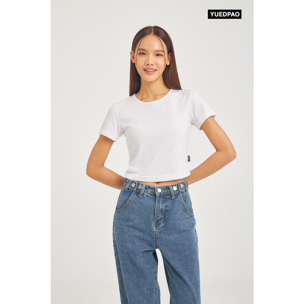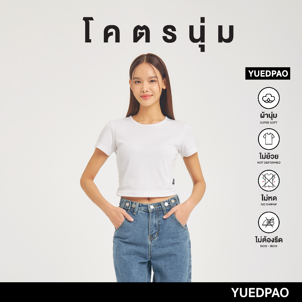 Yuedpao เสื้อครอป รุ่นโคตรนุ่ม นุ่มมาก ยับยาก ไม่ต้องรีด ยืดแต่ไม่ย้วย Crop Top เสื้อยืดครอปผู้หญิง สี White