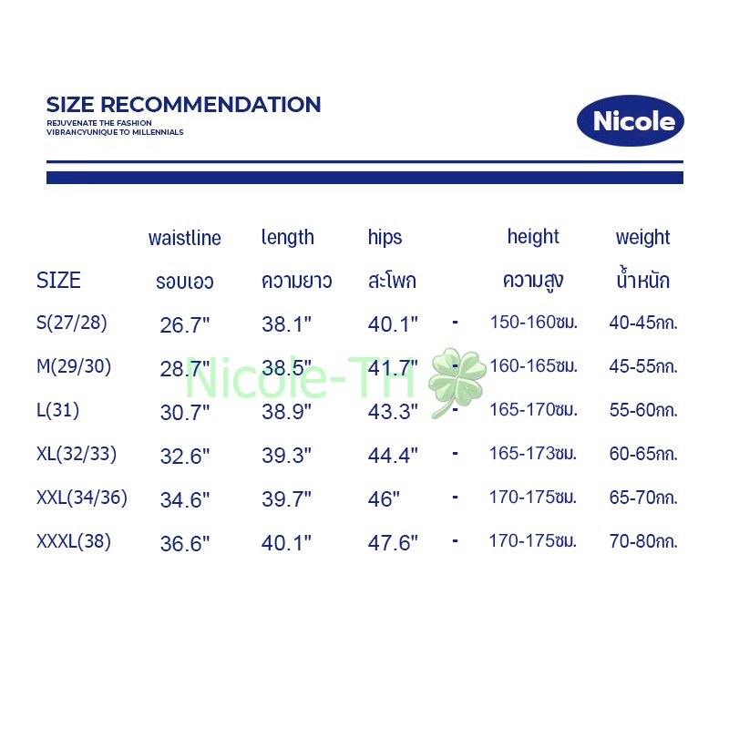 ... ามยาว38.5" สะโพก41.7" 160-165ซม. 🌴 L รอบเอว29-30" ความยาว38.9" สะโพก43.3" 165-170ซม. 🌴 XL รอบเอว31-32" ความยาว39.3" สะโพก44.4" 165-173ซม. 🌴XXL รอบเอว33-34" ความยาว39.7" สะโพก46" 170-175ซม. 🌴3XXL รอบเอว35-36" ความยาว40.1" สะโพก47.6" 170-175ซม.