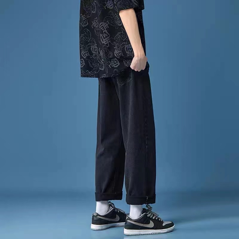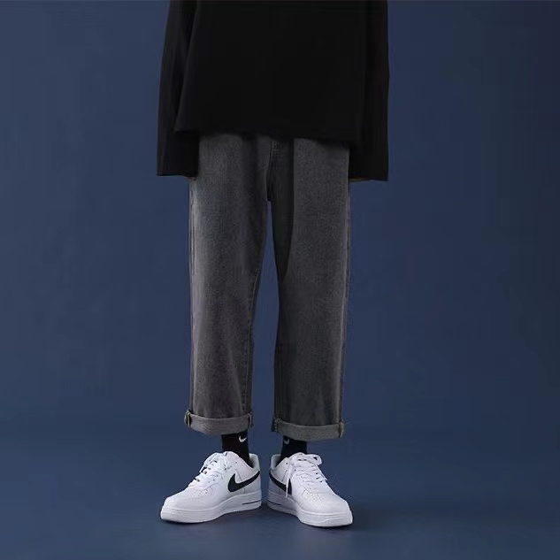 กางเกงยีนส์ขายาวผู้ชาย กางเกงทรงกระบอก สไตล์วินเทจ