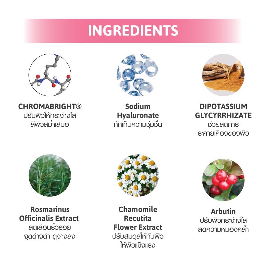 ... วันด้วยนวัตกรรม Water Drop เมื่อทาลงบนผิวหน้า เนื้อครีมจะแตกตัวเป็นน้ำแร่ ช่วยเติมความชุ่มชื่นเพิ่มการยึดเกาะแนบเนียนไปกับผิวได้ดียิ่งขึ้น พร้อมผสมผสานคุณค่าแห่งการบำรุงให้ผิวเนียนนุ่มด้วยไฮยาลูรอน รวมถึงสารสกัดจากโรสแมรี่และคาโมมายล์ที่ช่วยลดการระคายเคือง อ่อนโยนต่อผิว อีกทั้งยังมีส่วนผสมจากอาร์บูตินและสารสกัดจากชะเอมเทศ ที่ช่วยให้ผิวแข็งแรง ลดการอักเสบ และความหมองคล้ำ ให้ใบหน้าดูมีออร่าเปล่งประกายอย่างเป็นธรรมชาติ
