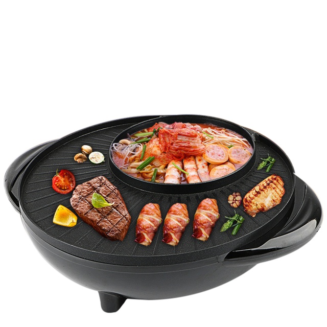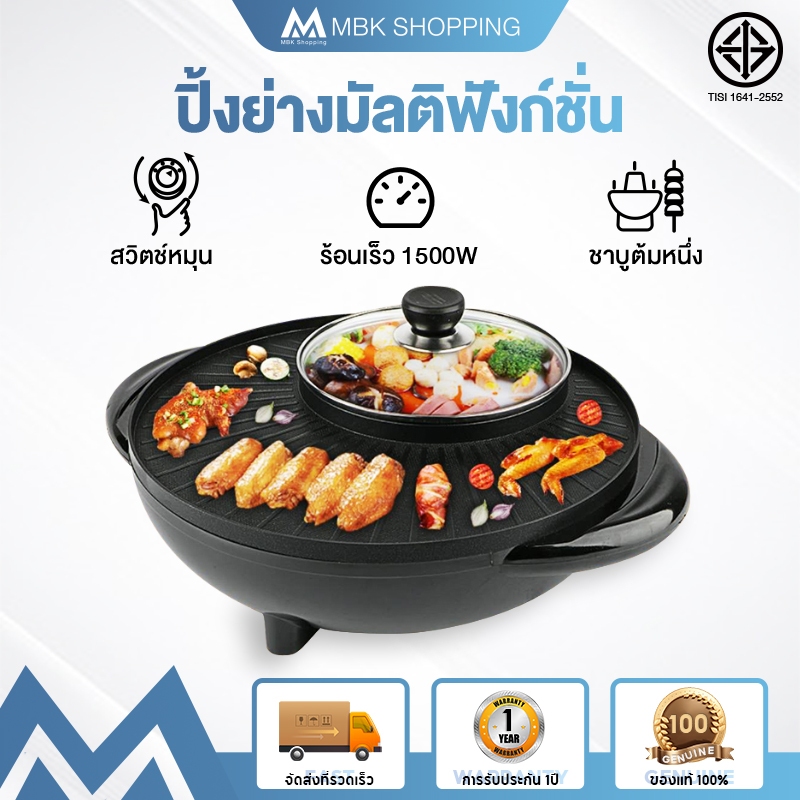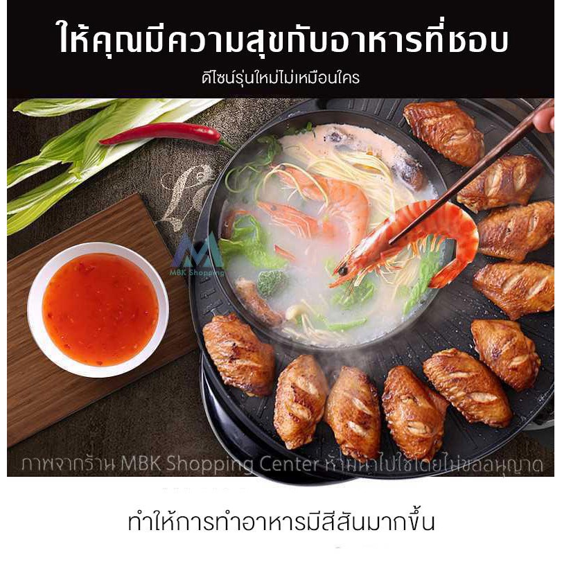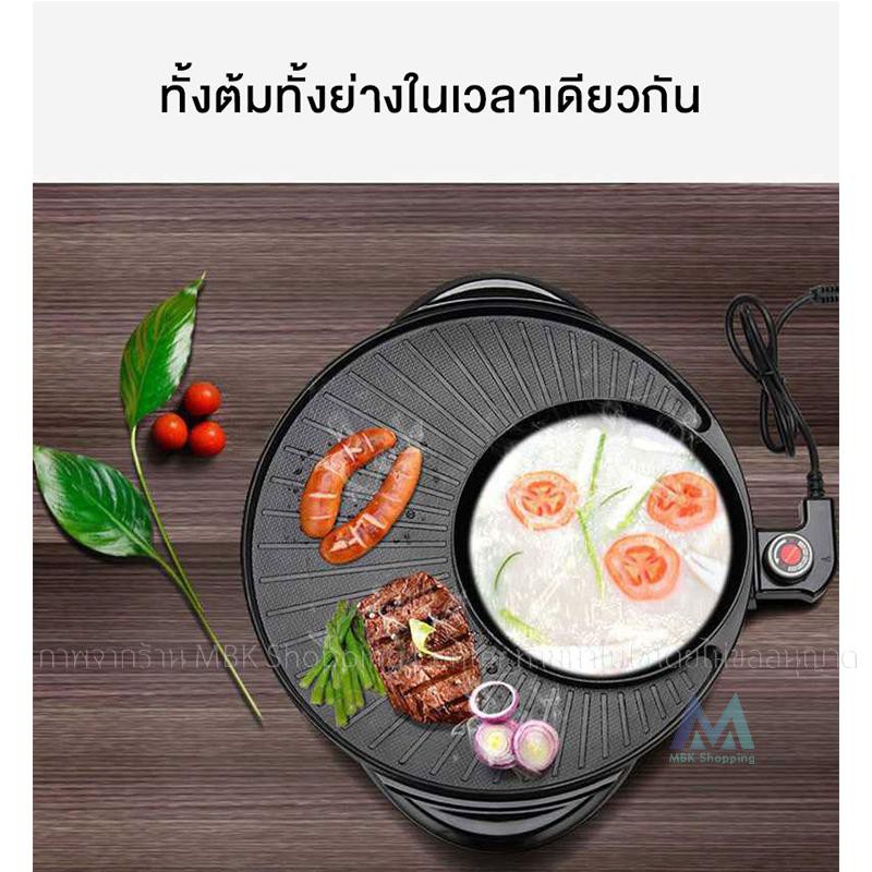 MBK กะทะปิ้งย่าง พร้อมหม้อสุกี้บาร์บีคิว แยก 2 ช่อง เตาย่างบาบีคิวไฟฟ้า ปิ้งย่าง+หม้อไฟ ถาดอบสไตล์เกาหลี ถาดอบไฟฟ้า