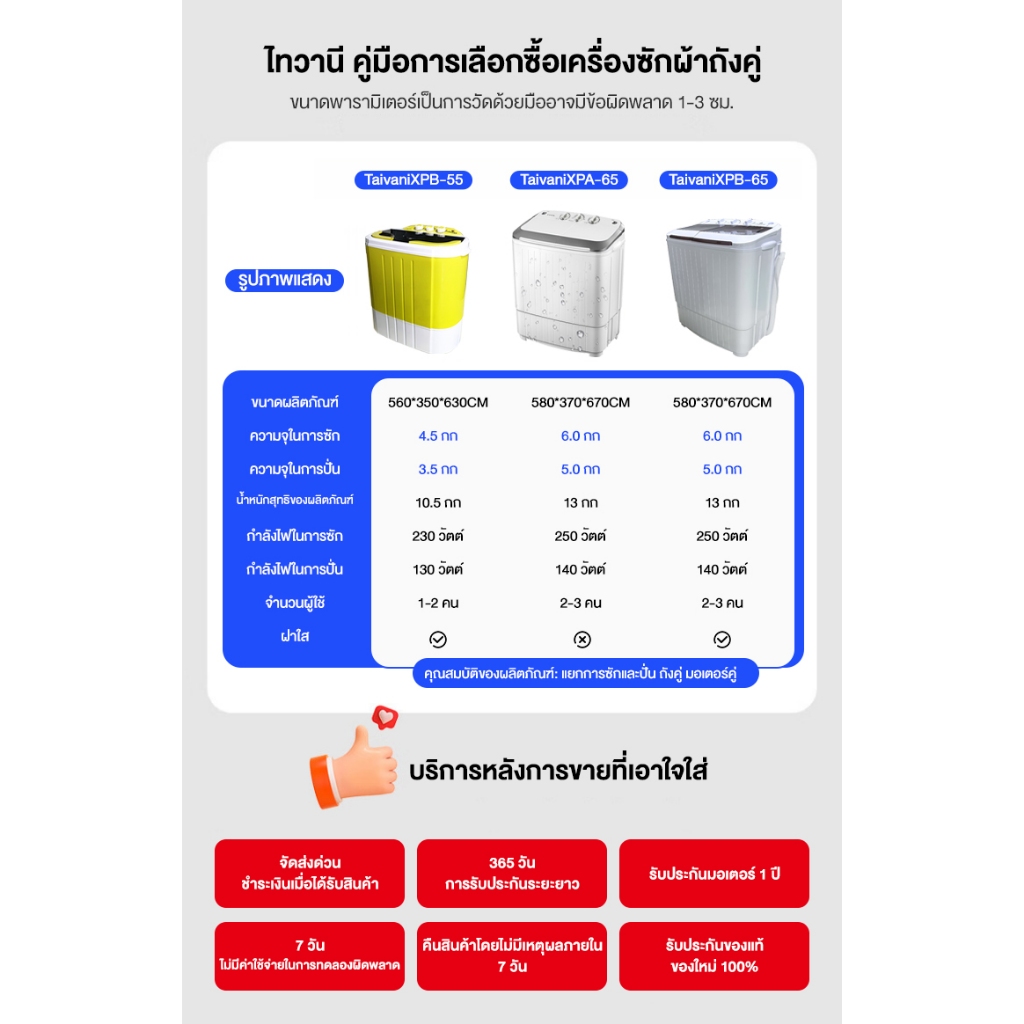 ... ั่นขนาดใหญ่ ป้องกันกลิ่นอับ แม้ทิ้งผ้าไว้นาน - ถังซักภายนอก ผลิตจากพลาสติกคุณภาพสูง ปลอดสนิม ตลอดอายุการใช้งาน - ฝาใส สามารถมองเห็นการทำงานทุกขั้นตอน ❄️ การจัดส่งสินค้า ระยะเวลาในการจัดส่งสินค้า ใน 2-7 วันทำการ ⚠️ หมายเหตุ - รบกวนลูกค้าอ่านคู่มืออย่างละเอียด จะมีวิธีการติดตั้ง-ข้อควรระวังต่างๆ - หากพบปัญหาหรือสอบถามข้อมูลหลังการขายเพิ่มเติม กรุณาติดต่อเรา.