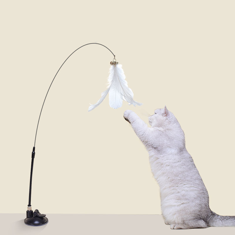 ถ้วยดูดที่แข็งแกร่งล้อเล่นแมวติดกับระฆังก้านยาวที่ถอดออกได้แมวของเล่นรักษาตัวเอง