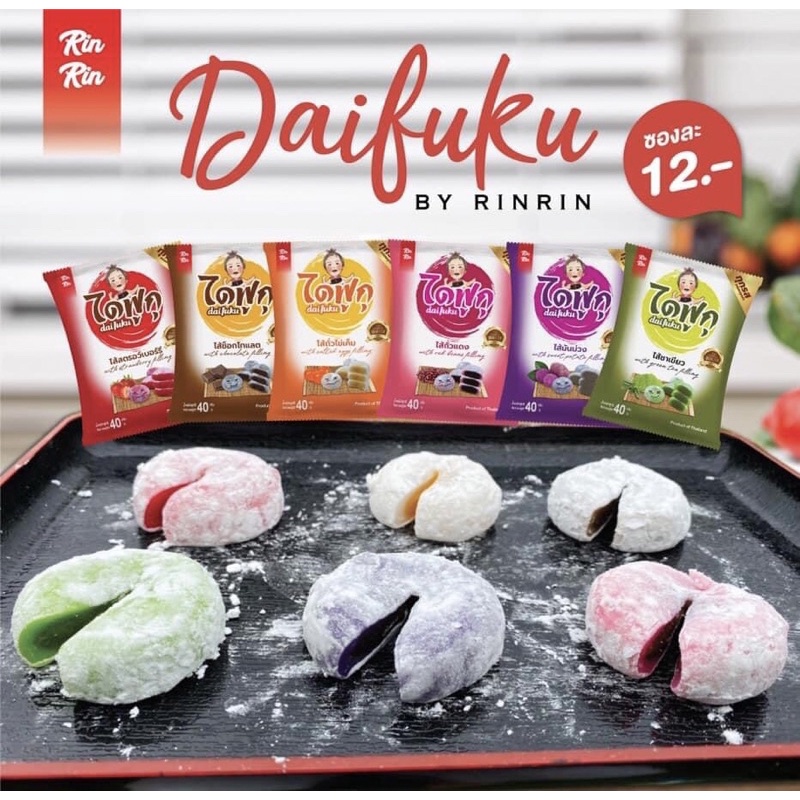 แป้งเหนียวนุ่ม หวานน้อย อร่อยสองเด้งในคำเดียว ยืดหน่อย อร่อยนะ ชิ้นใหญ่ จุใจ ใครบ้างไม่ชอบ ไดฟูกุ มีให้เลือก 5 รส ไส้ถั่วและไข่เค็ม ไส้สตรอว์เบอร์รี่ ไส้ช็อกโกแลต ไส้ชาเขียว ไส้มันม่วง บรรจุ 1 ชิ้น น้ำหนัก 37กรัม คละรสเป็นราคาโปร ทางร้านขออนุญาตคละสินค้านะคะ ลูกค้าจะไม่สามารถเลือ