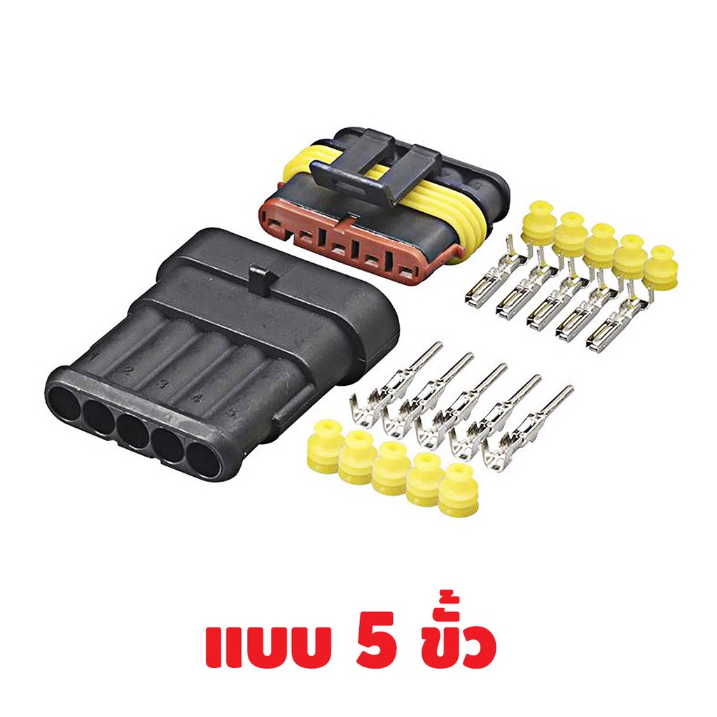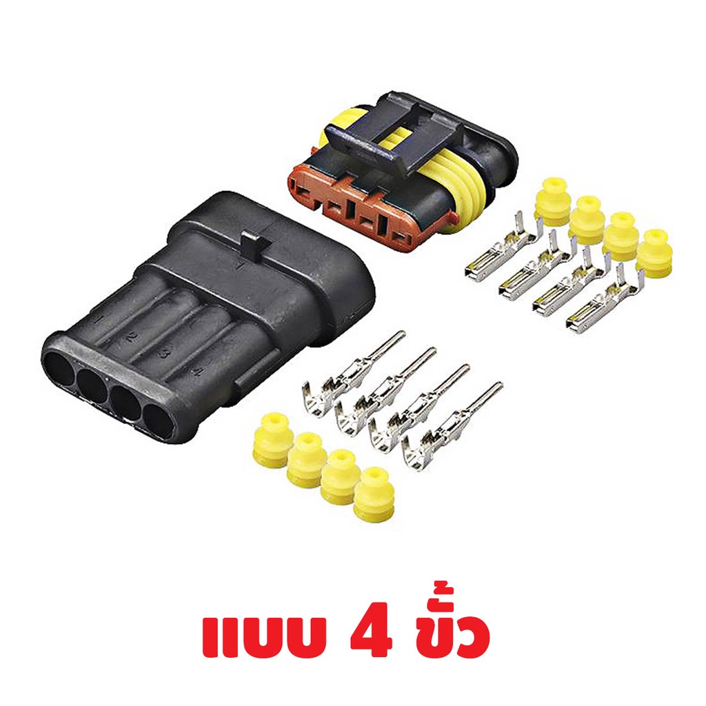 ปลั๊กต่อสายไฟรถยนต์ แบบกันน้ำ มีทั้งหมด 6 แบบ 1 ช่อง 2 ช่อง 3 ช่อง 4 ช่อง 5 ช่อง 6 ช่อง รายละเอียดสินค้า - ขั้วผู้ขนาด 1.7 มม. - ขั้วเมียขนาด 2.8 มม. - เหมาะสำหรับติดตั้งสายไฟอุปกรณ์รถยนต์ มอเตอร์ไซค์ รถบรรทุก เรือและเครื่องยนต์ทางน้ำ - แรงดัน 12 โวลต์ - ปลั๊กกันน้ำและกันคว