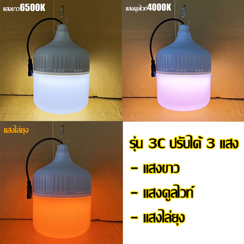 โคมไฟตั้งแคมป์ คุ้มชัวร์!!ไฟตุ้มโซล่าเซลล์ ไฟตั้งแคมป์ 500W/600W/700W/800W แสงขาว/3แสง กันน้ำIP65 สว่างยันเช้า ประก