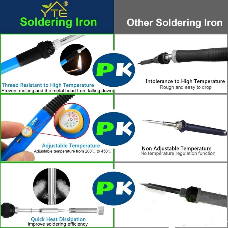 ใหม่เอี่ยมและคุณภาพสูง ที่วางหัวแร้งสปริงคู่มาตรฐานพร้อมฟองน้ำเป็นเครื่องมือที่มีประโยชน์มากเมื่อหัวแร้งทำงาน มีฐานที่ปลอดภัยและปลอดภัยกว่าแท่นบัดกรีแบบบางอื่น ๆ ขอบเขตสูงสุดในการหลีกเลี่ยงไม่ให้ผู้ใช้ถูกไฟไหม้และเสียหาย หัวแร้งแบบมืออาชีพที่เหนือกว่ามีการเปลี่ยนเคล็ดลับ 5 แบบการออกแบบที่ทนต่อคว
