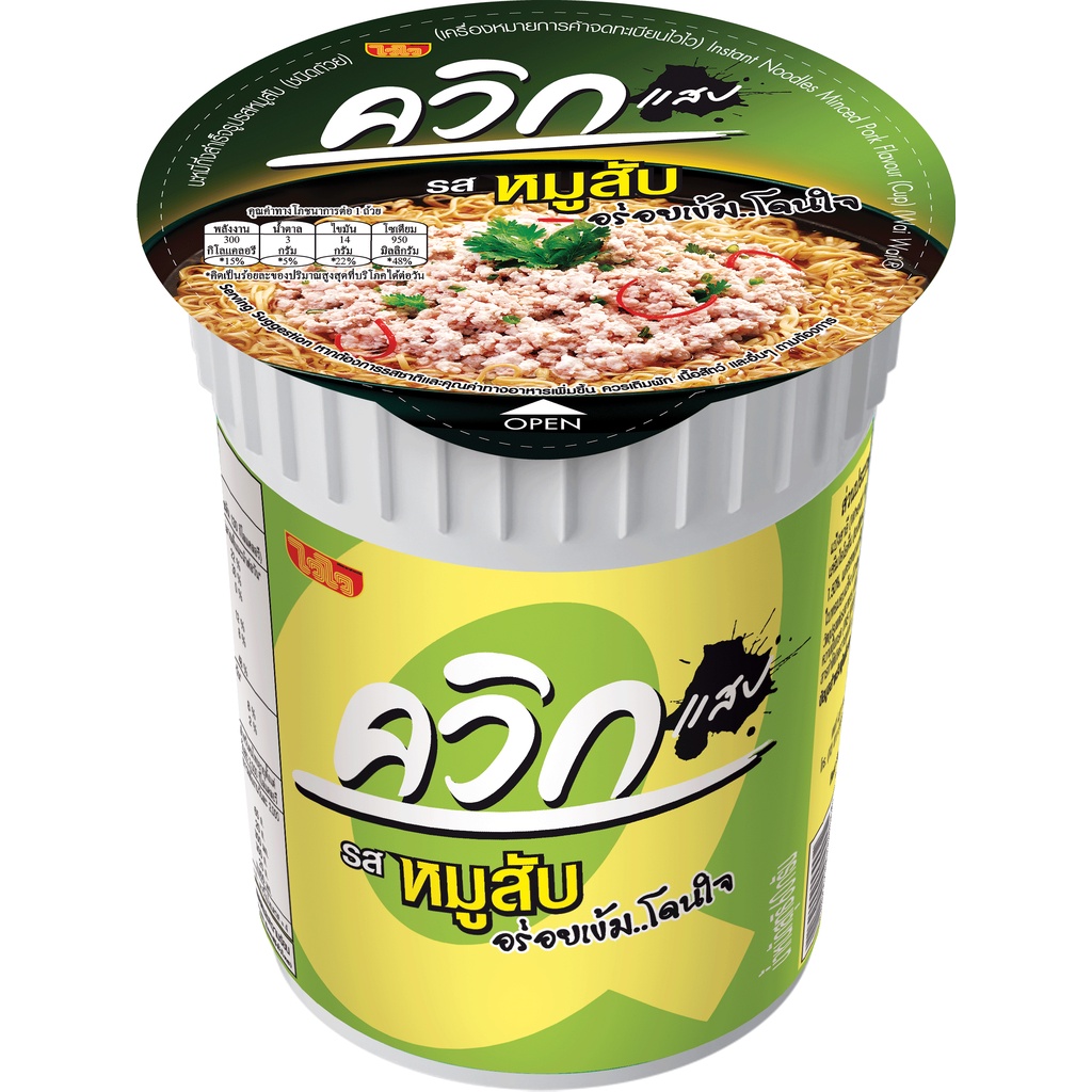 ไวไว ควิกคัพ บะหมี่กึ่งสำเร็จรูป ชนิดถ้วย แพ็ค 6ถ้วย รสชาติ[หมูสับ หมูสับต้มยำ ต้มยำพริกเผา ต้มยำมันกุ้ง ต้มโคล้ง รสต้มยำกุ้ง กุ้งนึ่งมะนาว] - ควิกคัพ #รสหมูสับ : ด้วยน้ำซุปหอมหวานเต็มรสชาติหมูสับ ผลิตจากวัตถุดิบชั้นเลิศ เนื้อหมูคุณภาพดี ครบเครื่อง อร่อยเข้ม...โดนใจ - ควิกคัพ #รสหมูสับต้มยำ