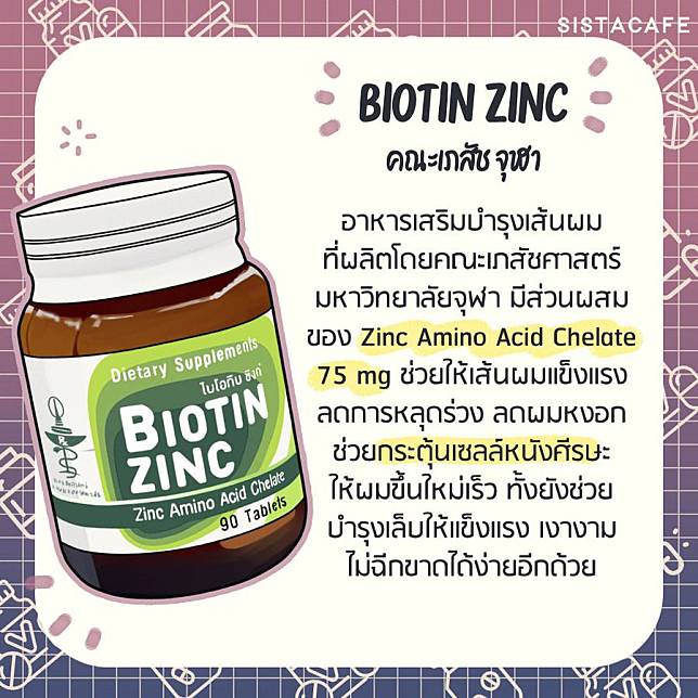 Biotin Zinc ไบโอทิน ซิงก์ คณะเภสัช จุฬา 90 เม็ด