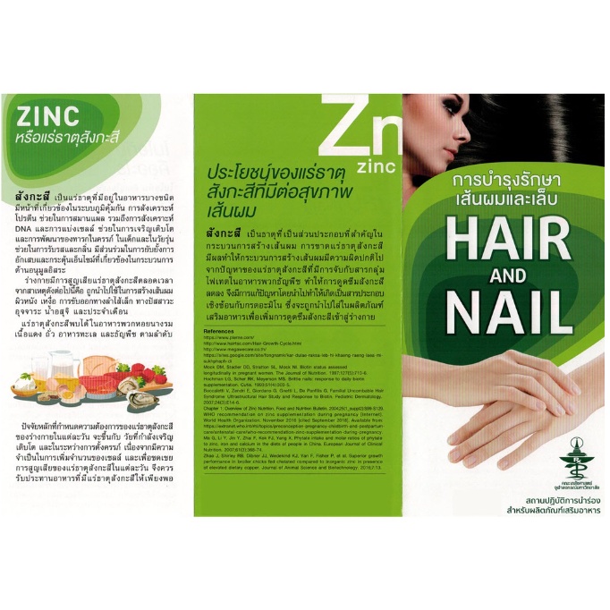 ... สำคัญในกระบวนการสร้างเส้นผม การขาดแร่ธาตุสังกะสี มีผลทำให้กระบวนการสร้างเส้นผมมีความผิดปกติ ใน 1 เม็ด ประกอบด้วย - ซิงก์อะมิโนคีเลต (20%) 75 มก. เทียบเท่ากับซิงก์ 15 มก. - ดี-ไบโอทิน 150 มก. เทียบเท่ากับไบโอทิน 150 มคก. อย.19-1-21959-5-0005