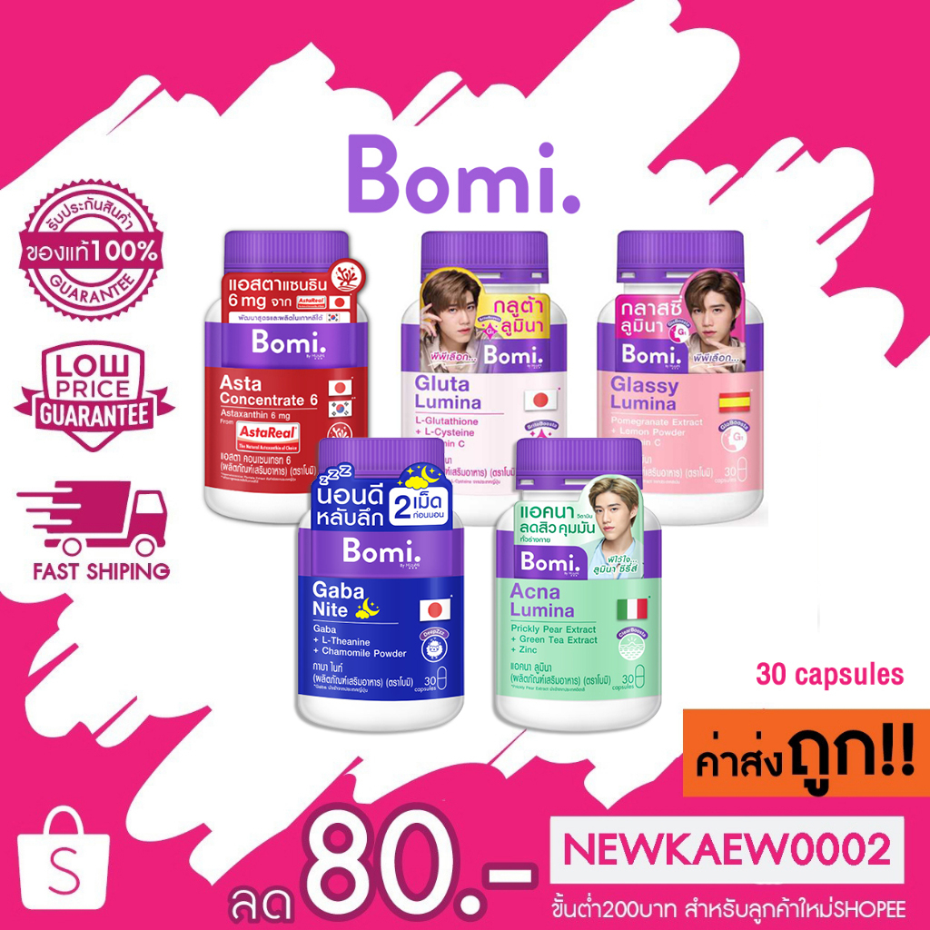 Bomi Gluta & Glassy , Asta Concentrate6 , Acna Lumina , Gaba Nite 30 capsules โบมิ กลูต้า ลูมินา & โบมิ กลาสซี่ ลูมินนา