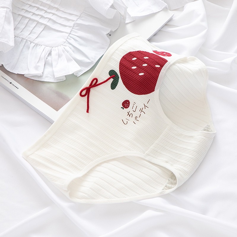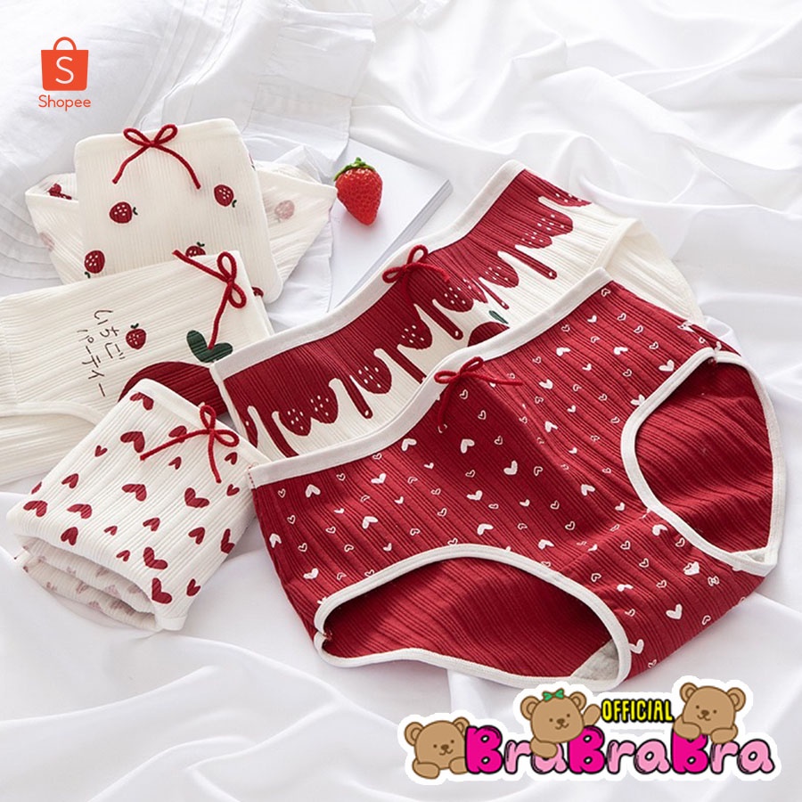 🧸💦𝑩𝒓𝒂𝑩𝒓𝒂𝑩𝒓𝒂⛱️🧸 กางเกงในผ้าฝ้าย เอวต่ำ พร้อมส่ง ลายสตอเบอร์รี่ #p-056