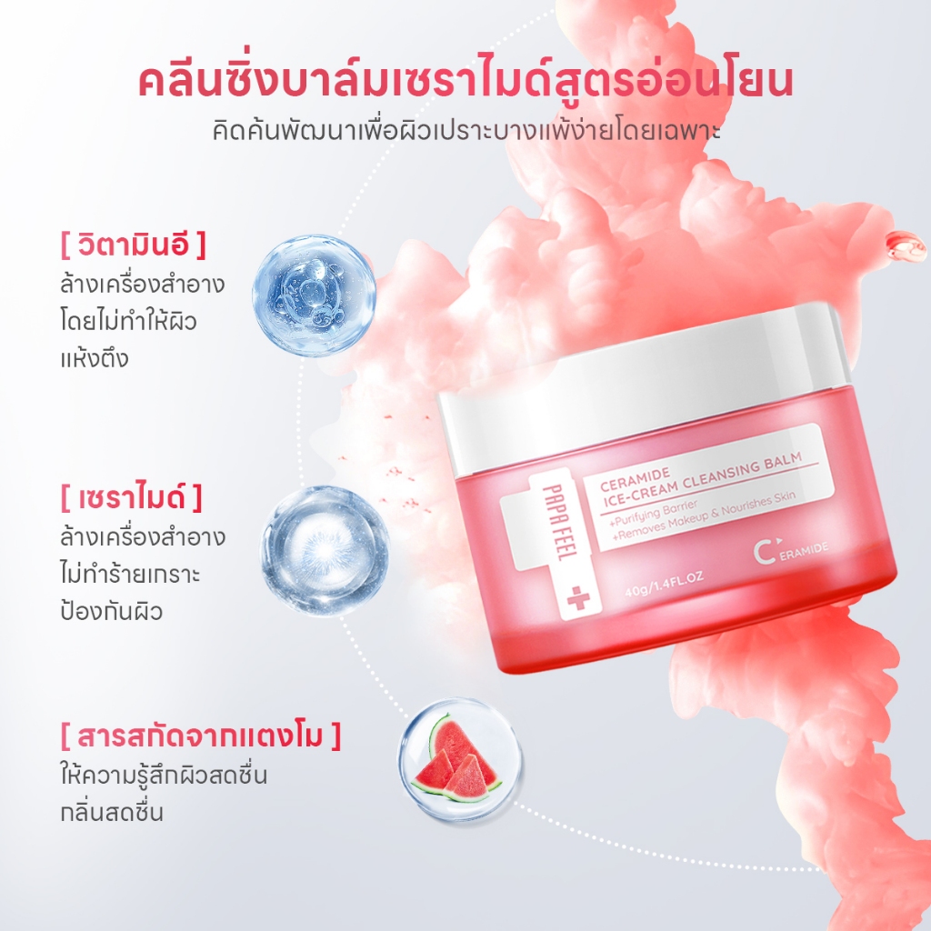 PAPA FEEL Ceramide ice-cream คลีนซิ่งบาล์ม ผิวบอบบางแพ้ง่าย อย่างล้ำลึก คลีนซิ่ง ลดสิวอุดตัน บำรุงผิว Cleansing Balm ( makeup remover คลีนซิ่งออยล์ ) 40g/70g