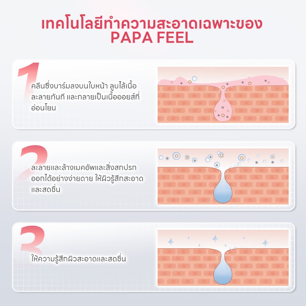 ... พาะ วัตถุดิบระดับไฮเอนด์มาจากระหว่างประเทศ 🐇ปราศจากการทดลองกับสัตว์ การทดสอบกับผิวมนุษย์เป็นเวลา 300 วัน 📞ห้องปฏิบัติการ PAPA FEEL สิทธิพิเศษเฉพาะสำหรับปรึกษาปัญหาผิวฟรี PAPA FEEL CERAMIDE ICE-CREAM CLEANSING BALM ปริมาณสุทธิ: 40g/70g FDA:13-2-6600032960 ผู้ที่เกี่ยวข้อง:ผิวแพ้ง่าย 🏆คุณสมบัติ ✔เนื้อสัมผัสเนียนนุ่มเหมือนไอศกรีม สูตรอ่อนโยนและนุ่มลื่น ละลายง่าย ✔ ทำความสะอาดเมคอัพผิวหน้าอย่างล้ำลึก ละลายน้ำมัน และสิ่งสกปรกออกได้อย่างง่ายดาย และลดสิวหัวดำ ✔ ผสานส่วนผสมของเซราไมด์และวิตามินอี บำรุงและซ่อมแซมเกราะป้องกันผิว ทำให้ใบหน้าเรียบเนียนนุ่มนวลหลังทำความสะอาด ✔ กลิ่นแตงโมสดชื่น ช่วยผ่อนคลายผิว ช่วยเติมความชุ่มชื้นและกักเก็บความชุ่มชื้น ขจัดสิ่งสกปรกออกจากรูขุมขน ไม่ทำให้ผิวตึง ช่วยปกป้องผิว ข้อดี 4 ประการ ✅ละลายเครื่องสำอางได้รวดเร็วภายใน 3 วินาที ✅บำรุงผิวและฟื้นฟูผิว: เซราไมด์และวิตามินอี ✅อ่อนโยน ไม่ระคายเคือง คูณสองความสดชื่น ไม่มันเยิ้ม ✅เนื้อสัมผัสของไอศกรีมนุ่มเหมือนกำมะหยี่ ชุ่มชื้น เบา และง่ายต่อการเกลี่ย 🔬สูตรบำรุงขั้นสูง ผ่อนคลายผิว ล้างเมคอัพออกได้อย่างอ่อนโยน 1. เซราไมด์ NP ซ่อมแซมและปกป้องเกราะป้องกันผิว เสริมสร้างความต้านทานของผิว 2. วิตามินอี ล็อคความชุ่มชื้นได้อย่างมีประสิทธิภาพ ทำให้ผิวเนียนนุ่มและเปล่งประกาย ช่วยซ่อมแซมผิวที่ถูกทำลาย 3. สารสกัดจากผลแตงโม (CITRULLUS LANATUS) ทำความสะอาดรูขุมขน ลดความหมองคล้ำ ให้ผิวขาวเนียนนุ่ม 📖วิธีการใช้งาน: ขั้นตอนที่ 1 ใช้ช้อนตักเนื้อบาร์ม ขั้นตอนที่ 2 ทาลงบนหน้าผาก แก้ม และคาง ขั้นตอนที่ 3 นวดเบาๆ เพื่อให้เครื่องสำอางละลาย ขั้นตอนที่ 4 ล้างด้วยน้ำอุ่น