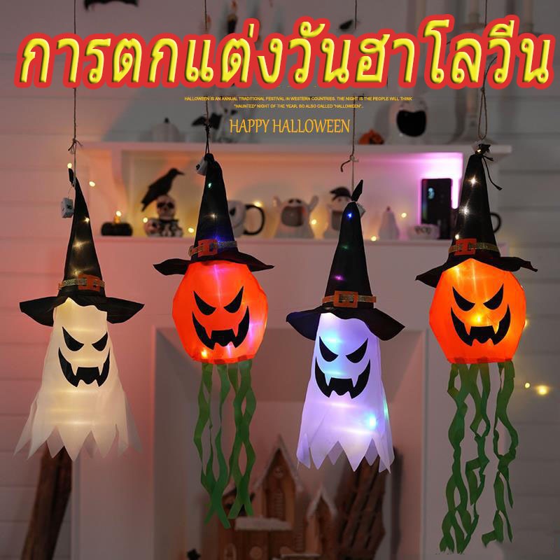 กรุงเทพจัดส่งสินค้า| พร็อพสําหรับแขวนตกแต่งปาร์ตี้ฮาโลวีน กลางแจ้ง รูปฟักทอง โคมไฟ LED รูปผีพร็อพสํา