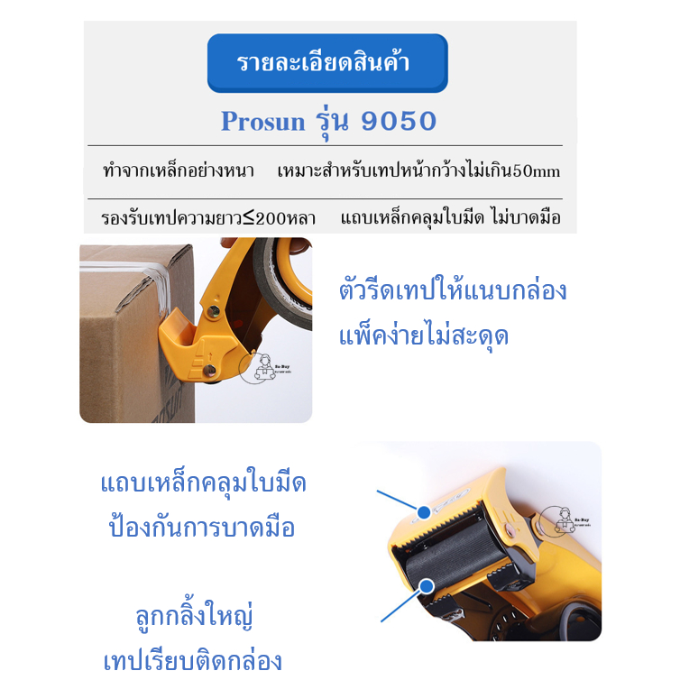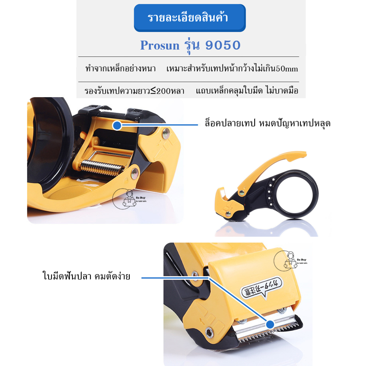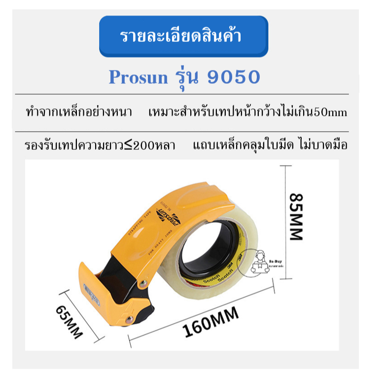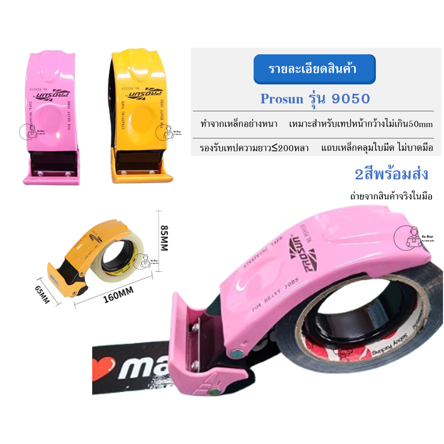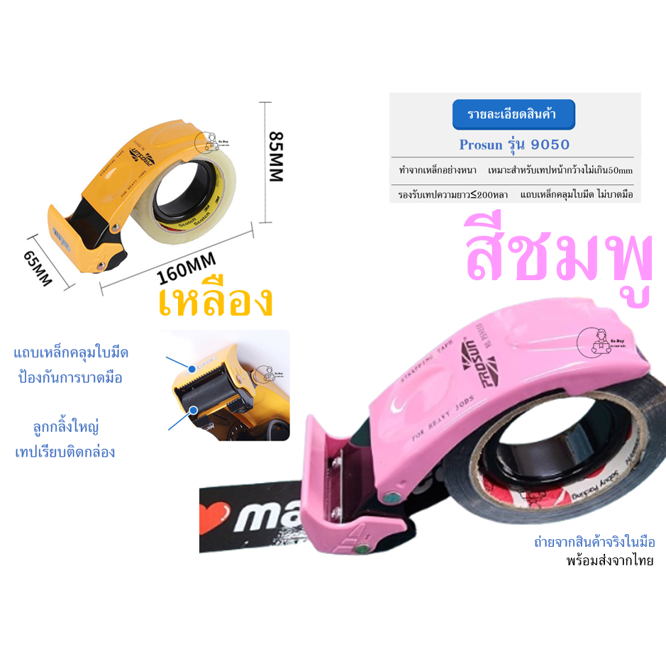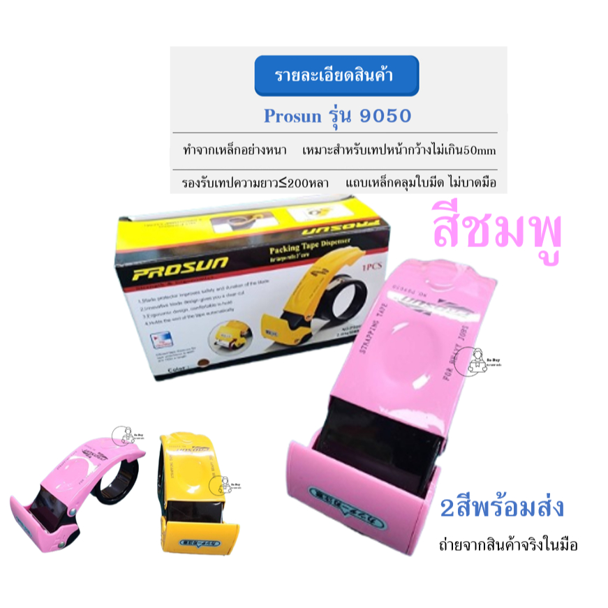 Prosun 9050 มี 2 สี เหลือง และ ชมพู พร้อมส่งจากคลังในไทย 📌รองรับเทปหน้ากว้างไม่เกิน 50มม. 📌เหมาะสำหรับเทปความยาวไม่เกิน 200 หลา 📌มีแถบเหล็กกันมีดบาด 📌มีใบมีดพร้อมใช้งาน แต่สามารถซื้อใบมีดเปลี่ยนได้ 📌มีก้านล็อคเทปม้วนย้อนกลับ 📌แถบรีดเทปให้เรียบติดกล่อง ทำให้แพ็คง่ายเสร็จในขั้นตอนเดียว