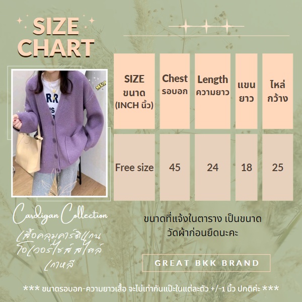 ... ะ เสื้อสาวอวบใส่ได้ อกเสื้อ 45 นิ้ว ใส่คลุมหลวมๆได้ เพิ่มกิมมิกมีกระเป๋าใหญ่สอดมือได้ด้านหน้าสองข้าง ฟรีไซต์ขนาดใหญ่ อก : ก่อนยืด 45 นิ้ว (ยืดได้ถึง 47 นิ้ว) เสื้อยาว : 24 นิ้ว แขนยาว : 18 นิ้ว รอบแขน : 15 นิ้ว ไหล่กว้าง : 25 นิ้ว **เสื้อผ้าสีเข้มควรแยกซักใน 1-3 ครั้ง ป้องกันสีตกใส่กัน ทุกชนิดสินค้า #เสื้อคาร์ดิแกน #เสื้อคลุม #โอเวอร์ไซส์ #เสื้อสาวอวบ #เสื้อคลุมเกาหลี #เสื้อกันหนาว #เสื้อกันแดด #เสื้อเวตเตอร์ #เสื้อแดง #เสื้อตรุษจีน #เสื้อเบลเซอร์ #blazer #เสื้อคลุม #เสื้อสูท #เสื้อครอป #สไตล์เกาหลี #เสื้อมีไซส์ #เบลเซอร์ผู้หญิง #เสื้อคลุมผู้หญิง #ขายดี #GreatBKK #เกรทบีเคเค #เสื้อโอเวอร์ไซต์ #เสื้อไหมพรม #เสื้อผ้าผู้หญิง #งานป้าย #เสื้อไหมพรม #เสื้อคุณภาพดี #เสื้อแฟชั่น #เสื้อคอวี #เสื้อคอกลม #เสื้อแขนยาว #เสื้อแขนสั้น #เสื้อยืด #เสื้อลายช้าง #เสื้อใส่หน้าหนาว #เสื้อไปเที่ยว #เสื้อกระดุมหน้า #เสื้อเบลเซอร์ #blazer #เสื้อคลุม #ผ้าดี #พร้อมส่งจากกทม #เสื้อหน้าหนาว #เสื้อใส่ไปเที่ยว #Lovito #เสื้อใส่ไปทำงาน #เสื้อผู้หญิง #เสื้อสาวเจ้าเนื้อ #เสื้อไซต์ใหญ่ #ราคาถูก #เสื้อสาวต้นแขนใหญ่ #เสื้อผ้านิ่ม #ผ้านิ่ม #เสื้อคาร์ดิแกน #เสื้อคลุม #โอเวอร์ไซส์ #เสื้อสาวอวบ #เสื้อคลุมเกาหลี #เสื้อกันหนาว #เสื้อกันแดด #เสื้อสเวตเตอร์ #เสื้อแดง #เสื้อเหลือง #เสื้อเขียว #เสื้อตรุษจีน #shopee #เสื้อเชิ้ต #เสื้อกิมโมโน #เสื้อฮาวาย #เสื้อผู้ชาย #เสื้อคอปก #เสื้อคอฮาวาย #เสื้อไปเที่ยว #เสื้อลายดอก #เสื้อสวย #เสื้อผู้หญิง #เสื้อunisex #เสื้อคอปาด #เสื้อคอปาดแขนสั้น #เสื้อคอปาดแขนยาว #เสื้อคอยู #เสื้อคอหัวใจ #เสื้อลายทาง #เสื้อลายสก๊อต #เสื้อคอปีน #เสื้อคอเกย #ซิป #ฮู้ด #เสื้อโค้ท #เสื้อแจ็คเก็ต #เสื้อโค้ทผู้หญิง #เสื้อคลุมผู้หญิง #เสื้อคาร์ดิแกนผู้หญิง #เสื้อกันหนาวผู้หญิง #เสื้อครอป #เสื้อสเวตเตอร์ #sweater #Cardigan #ชุดเซท เซทเสื้อ #ไหมพรมเกาหลี #เสื้อเบลเซอร์ลำลอง #เสื้อคลุมไหมพรม #เสื้อคลุมไหมพรม #เสื้อคลุมแขนสั้น #เสื้อคลุมทำงาน #พร้อมส่ง