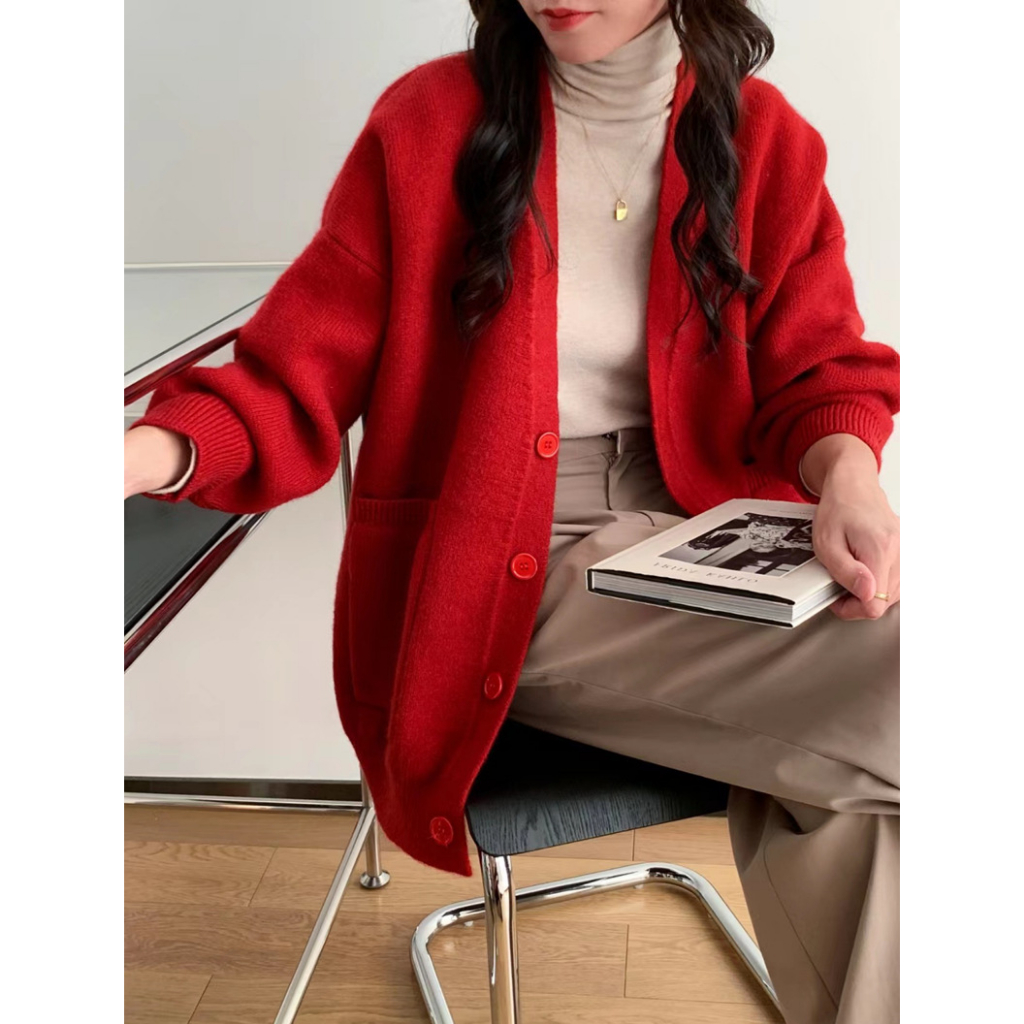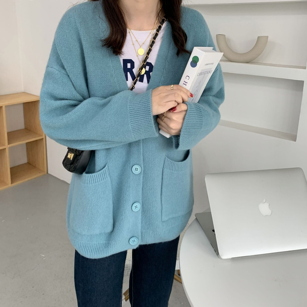 MUAYLY SHOP🔸10สี 🌷 เสื้อคลุมไหมพรม คาร์ดิแกน เสื้อกันหนาว โอเวอร์ไซต์[มีกระเป๋า2ข้าง]สไตล์เกาหลี ผ้าหนานุ่ม สาวอวบใส่ได้