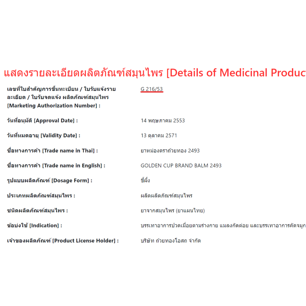 [1 ขวด] ยาหม่องตราถ้วยทอง Golden Cup Balm มีแบบขวดแก้ว - 12 กรัม - 22 กรัม - 50 กรัม ยาที่มีกลิ่นหอมจากสมุนไพร ยาหม่องตราถ้วยทองช่วยบรรเทาอาการปวดเมื่อยกล้ามเนื้อ มีกลิ่นอ่อนโยนที่ให้ความรู้สึกสบาย ช่วยบรรเทาอาการปวดเนื่องจากแมลงสัตว์กัดต่อย เช่น มดกัด ผึ้งต่อย หรือตะขาบกัด เป็นต้