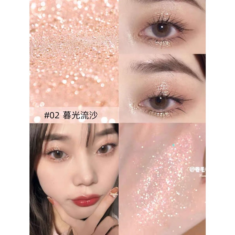 1030 อายแชโดว์ กลิตเตอร์ ลิขวิดอายแชโดว์ แต่งหน้า แต่งตา ประกายวิ้งๆ เนื้อลิขวิด ติดทนนาน เป็นไพรมเมอร์ตาได้ ใช้แต่งตา ไฮไลท์ใบหน้า ตามต้องการ มี 4 เฉดสี ประกายวิ้งให้เลือก 01#02#03#04# ขนาดบรรจุ 4g.